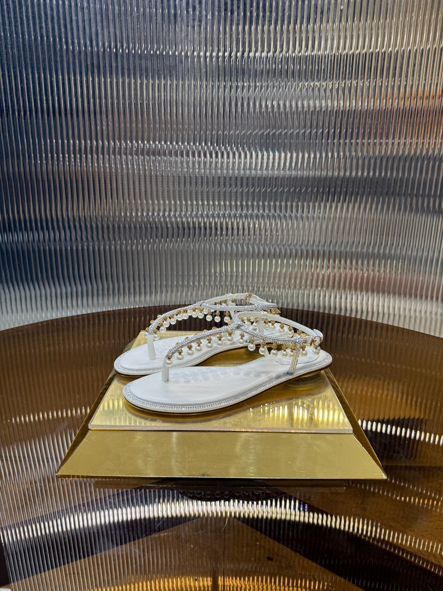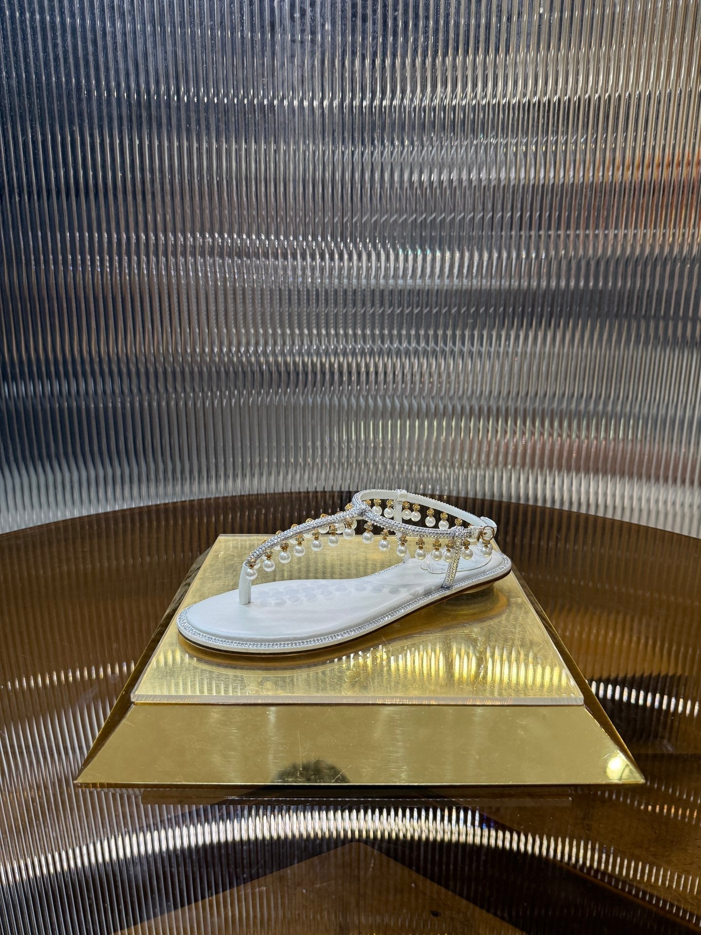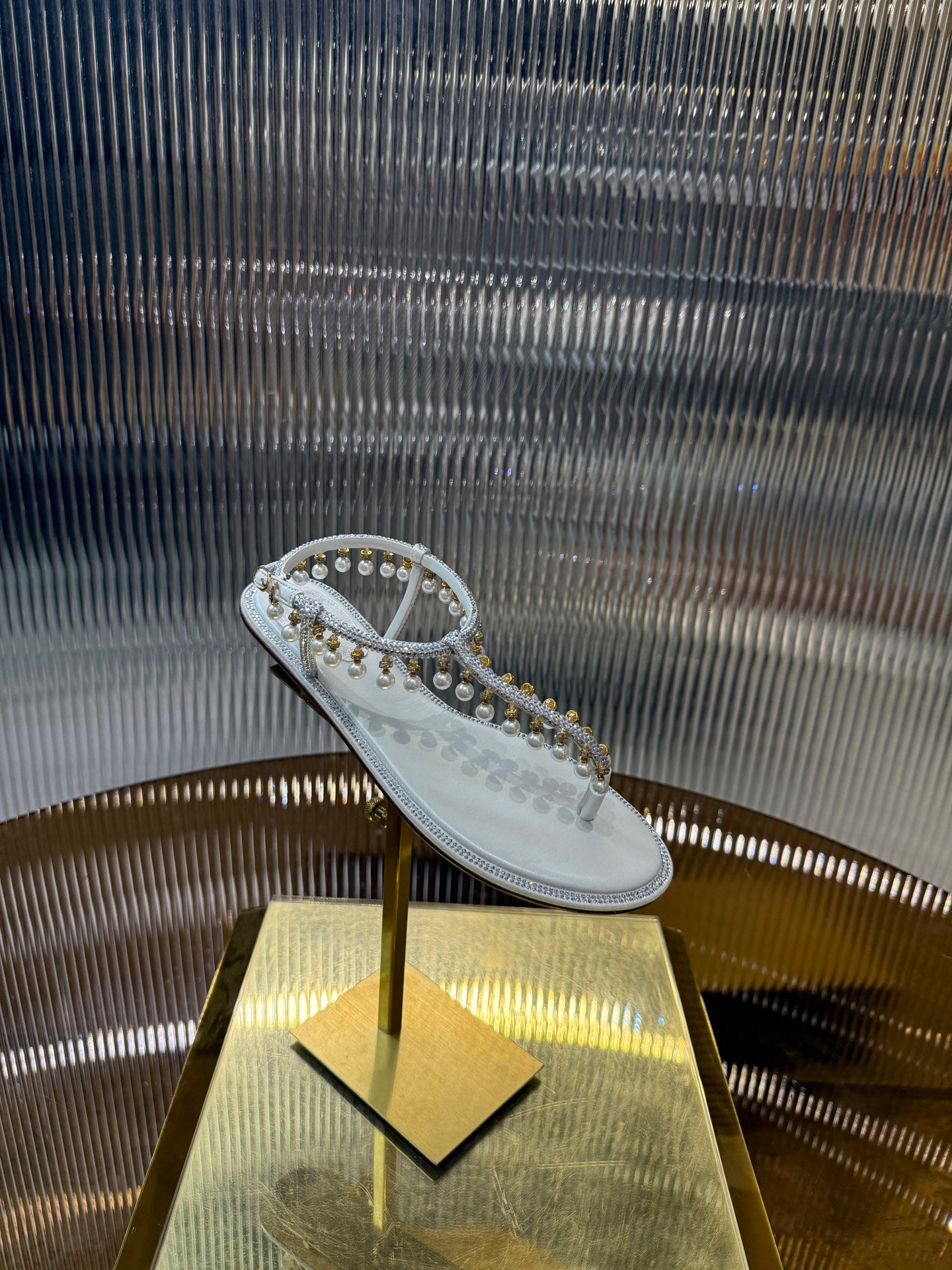 RC 25C Thong Diamond Flat Sandals White Silk Rhinestone 275772