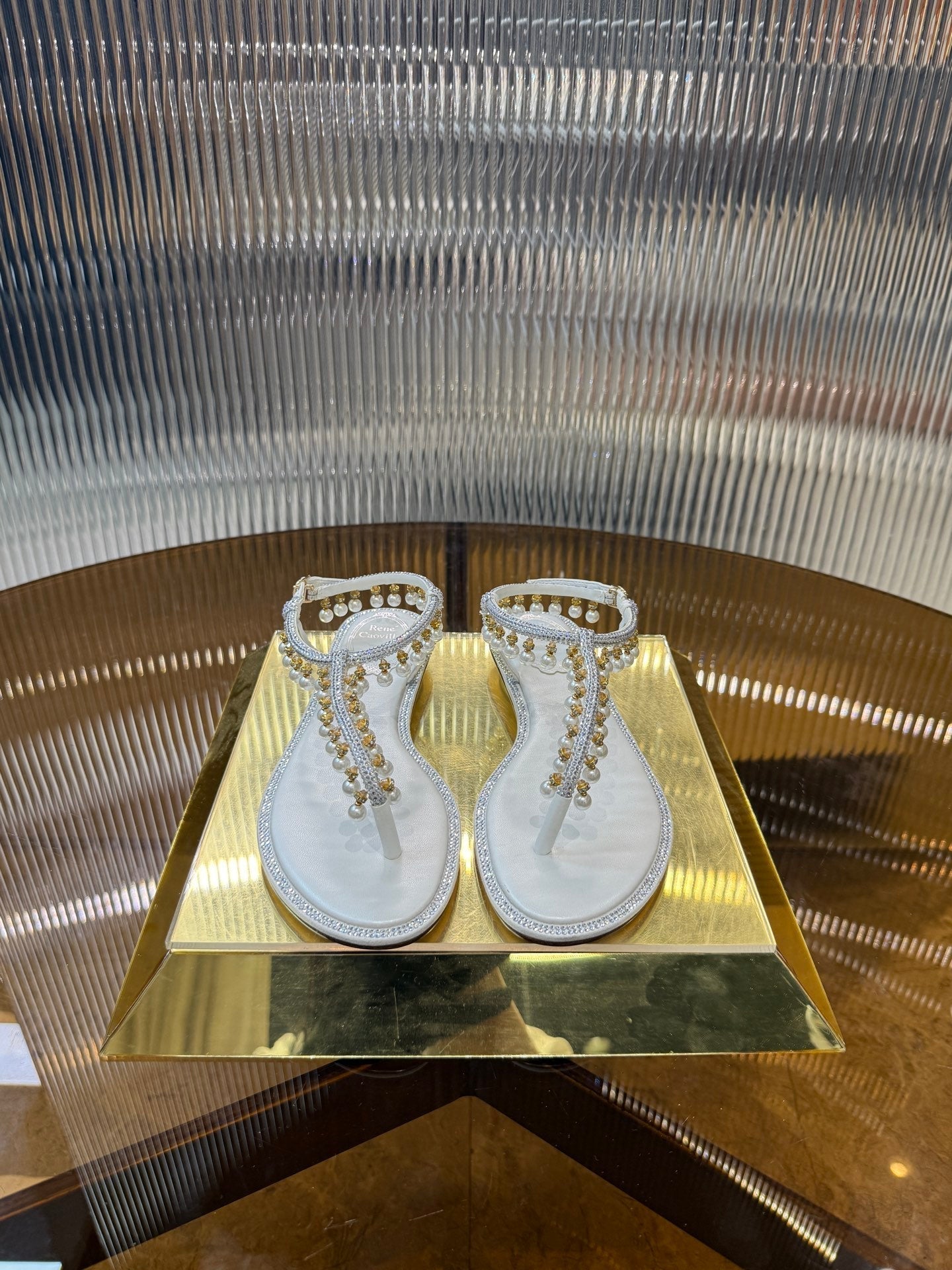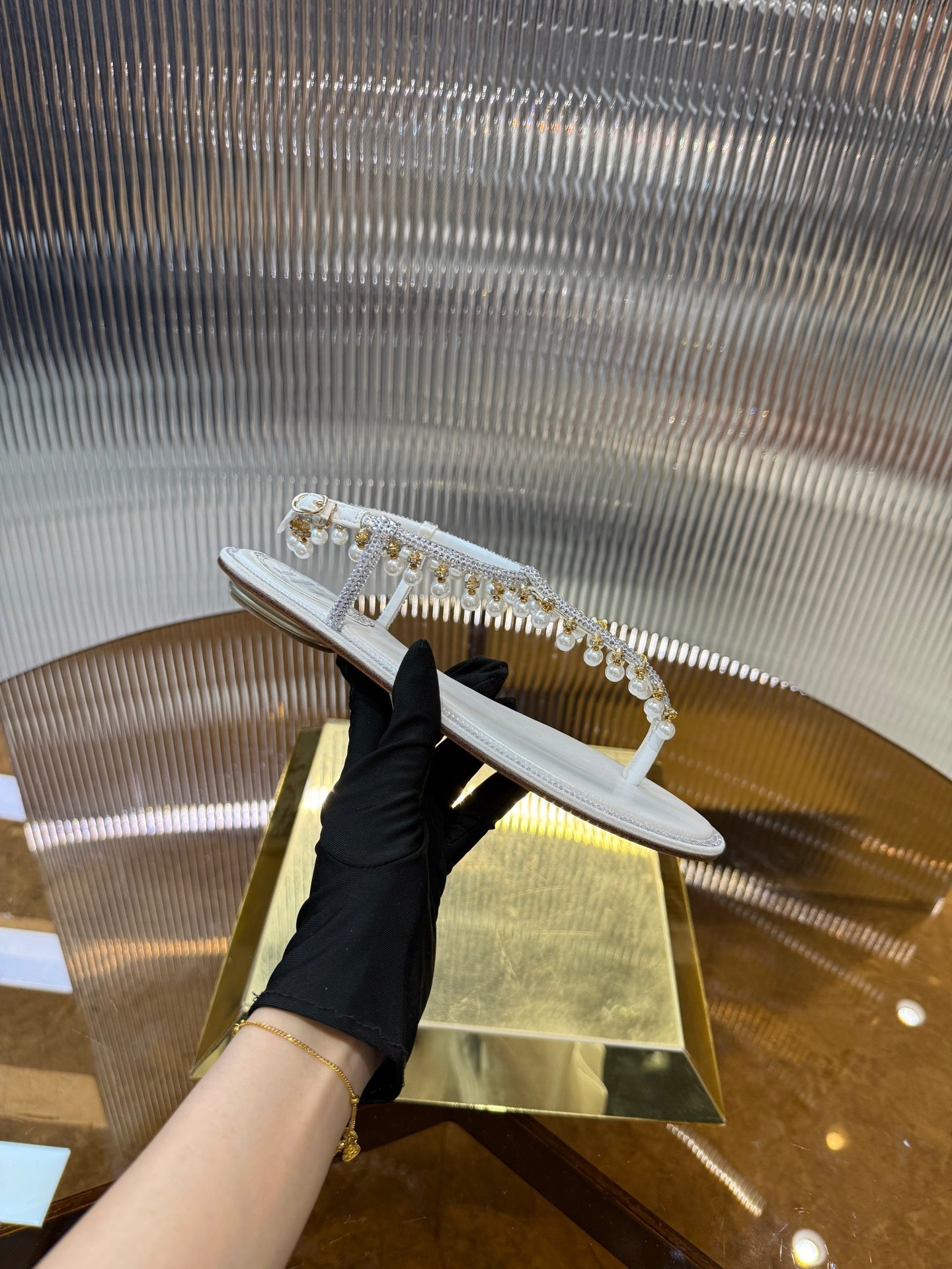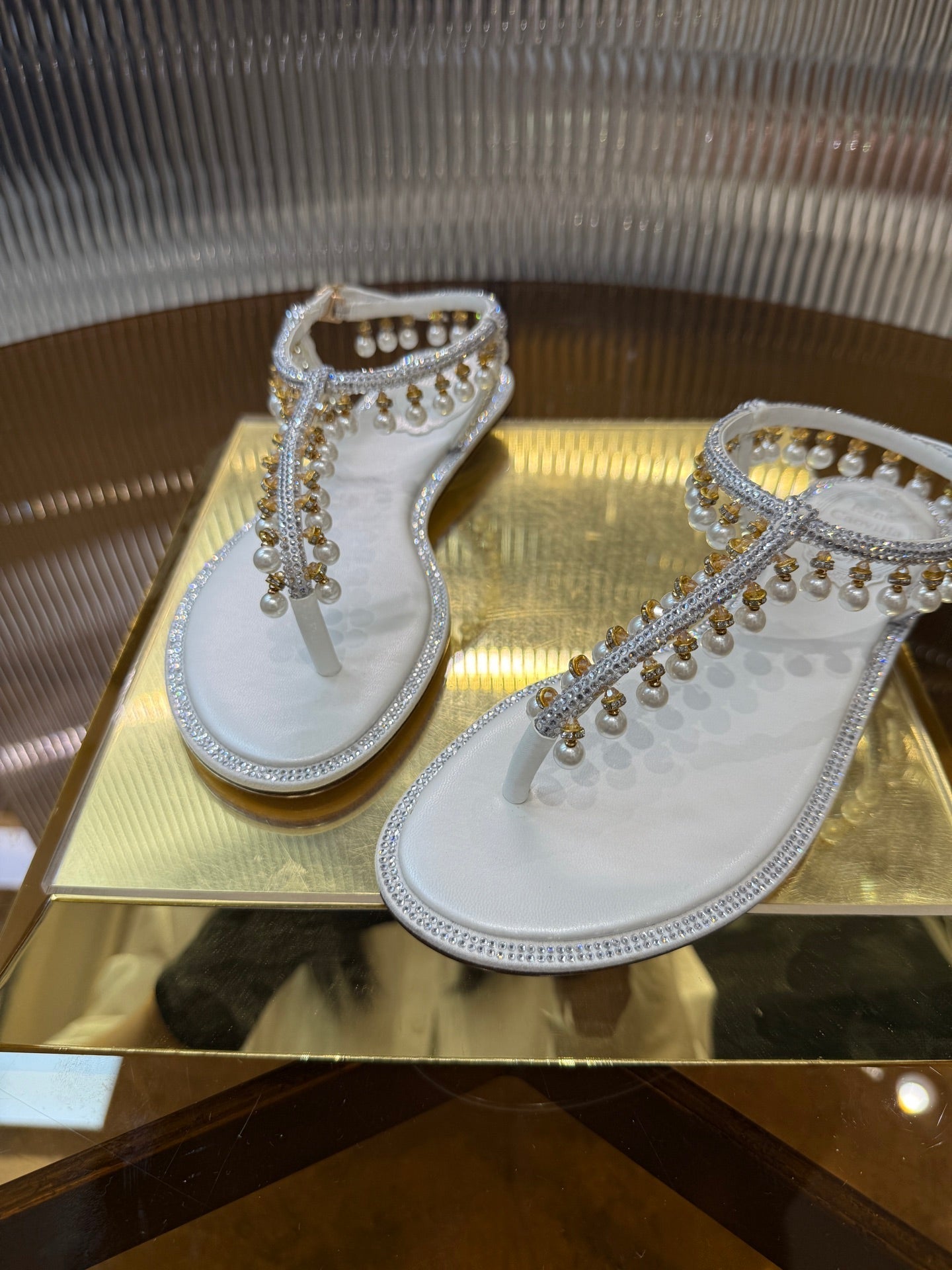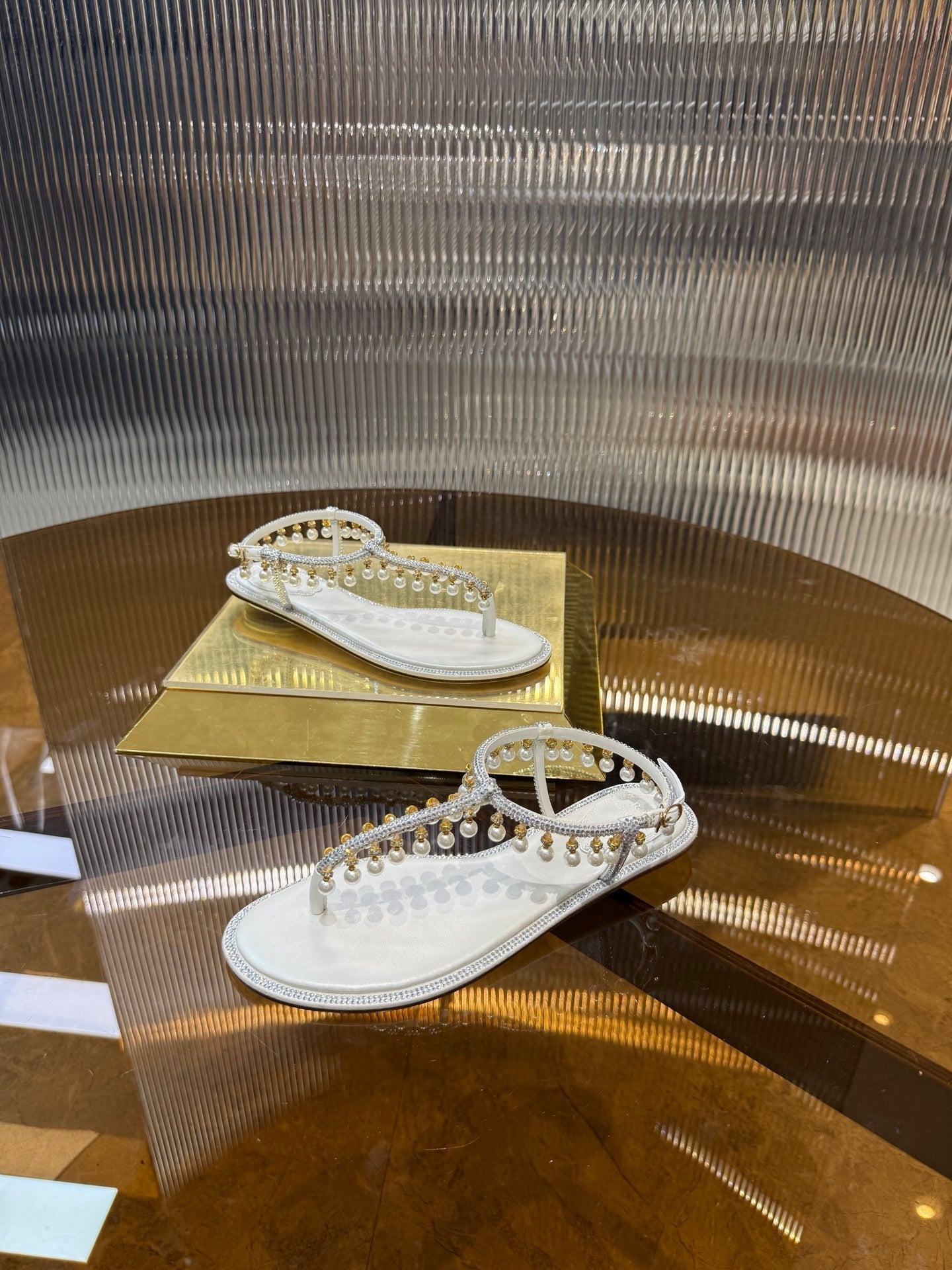 RC 25C Thong Diamond Flat Sandals White Silk Rhinestone 275772
