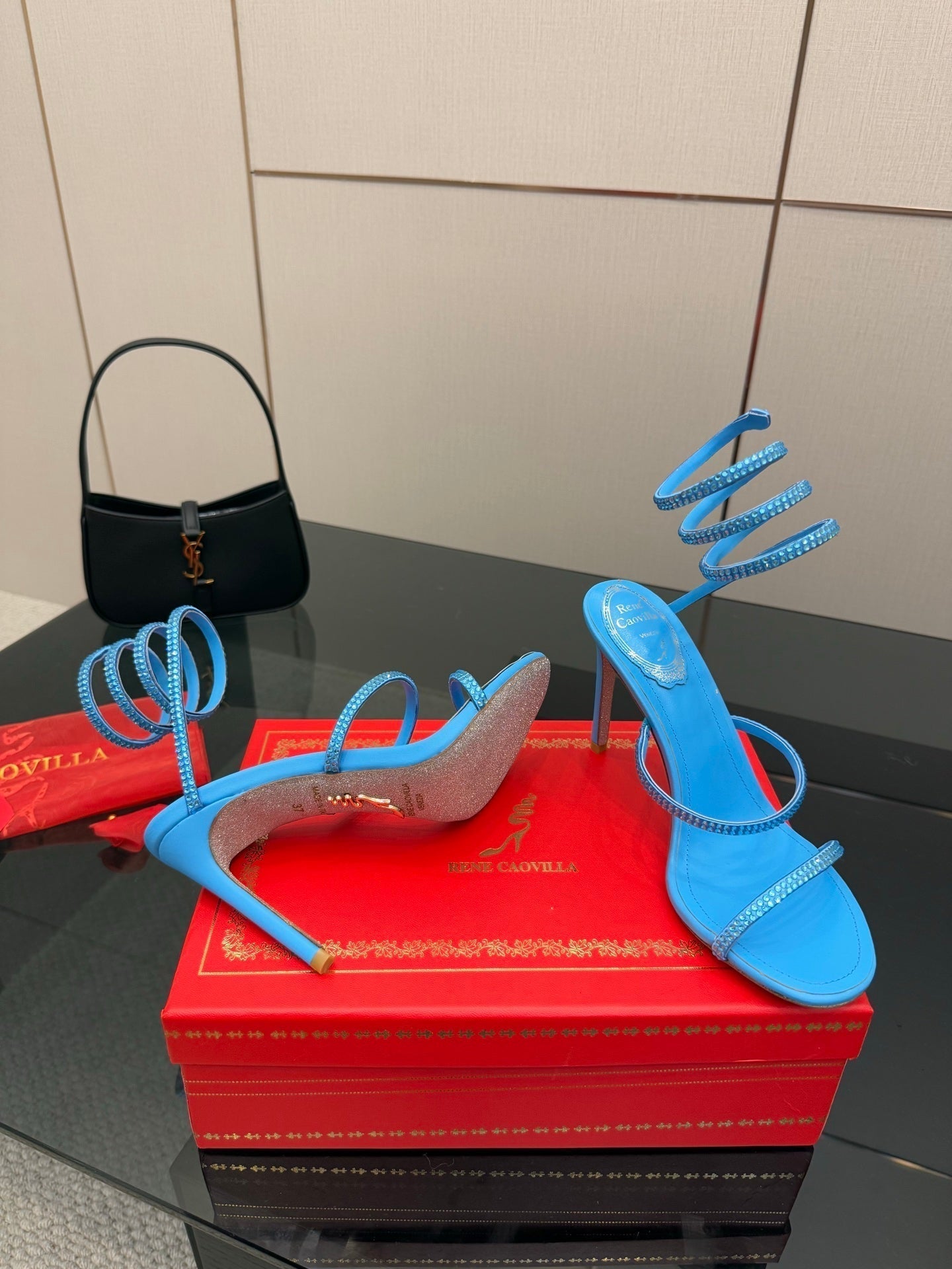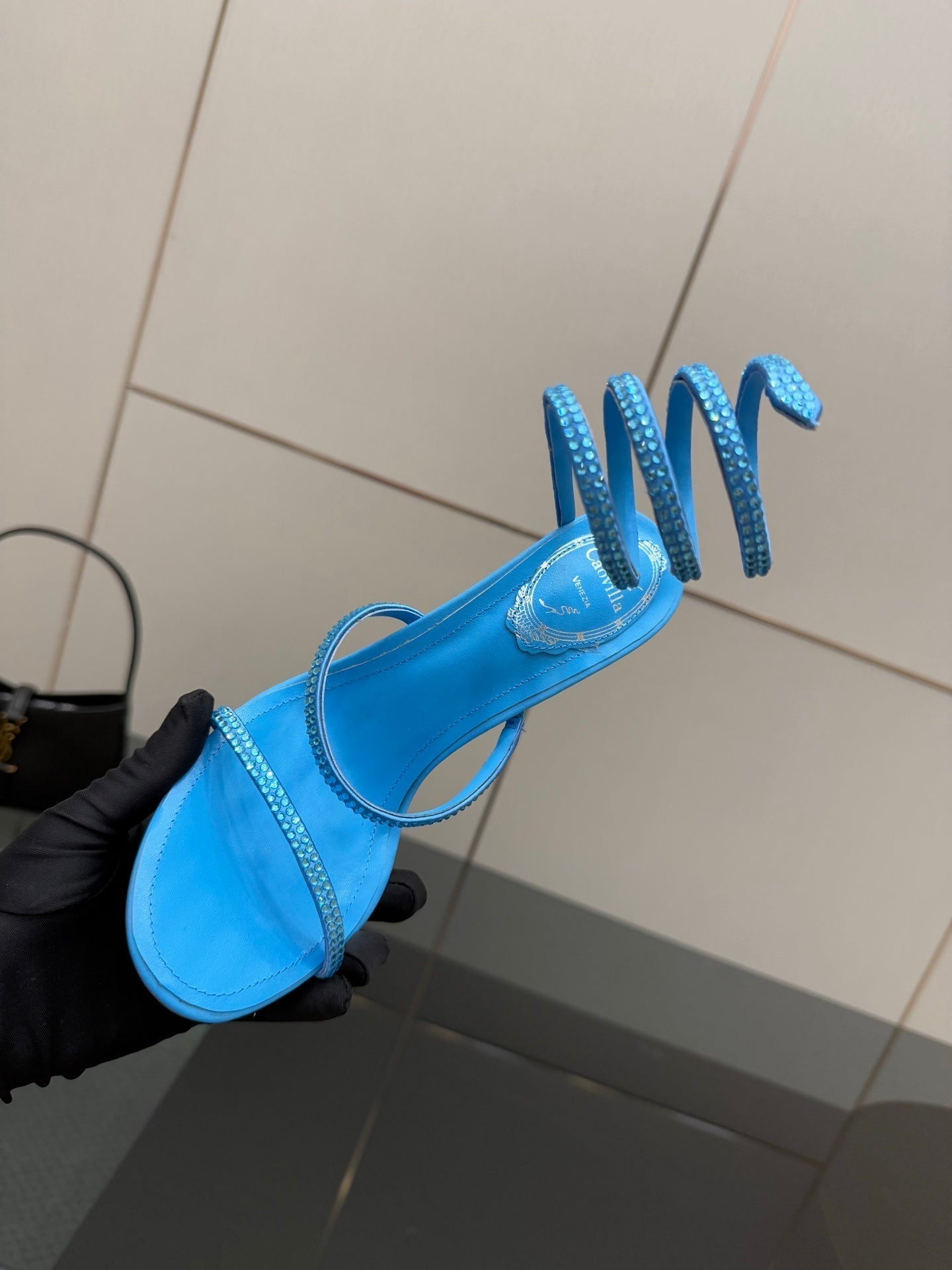 RC Sandals 9.5cm Blue Silk Creole Crystal Diamond 302603
