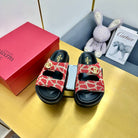 VT 25 Platform Sandals Black Red Slippers Cowhide