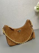 HOBO BAG 23 IN RUSSET BROWN SUEDE GOLD CHAIN