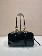 LARGE RECTANGULAR BAG 30 IN BLACK OIL WAX LAMBSKIN GOLD HARDWARE