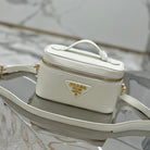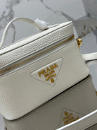 VANITY CASE 18 IN WHITE GRAINED CALFSKIN GOLD HARDWARE