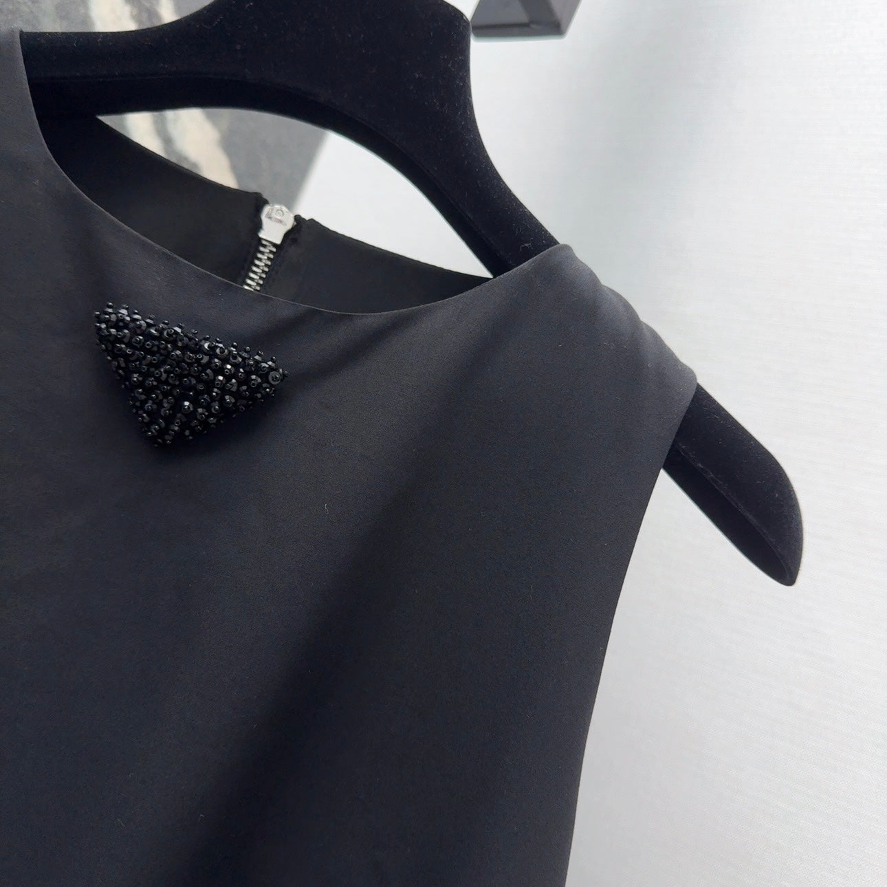 Prada 2025 Sleeveless Dress A-line Babydoll Black Polyester