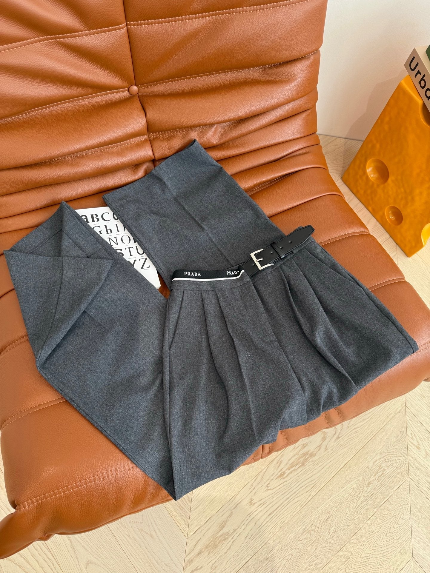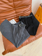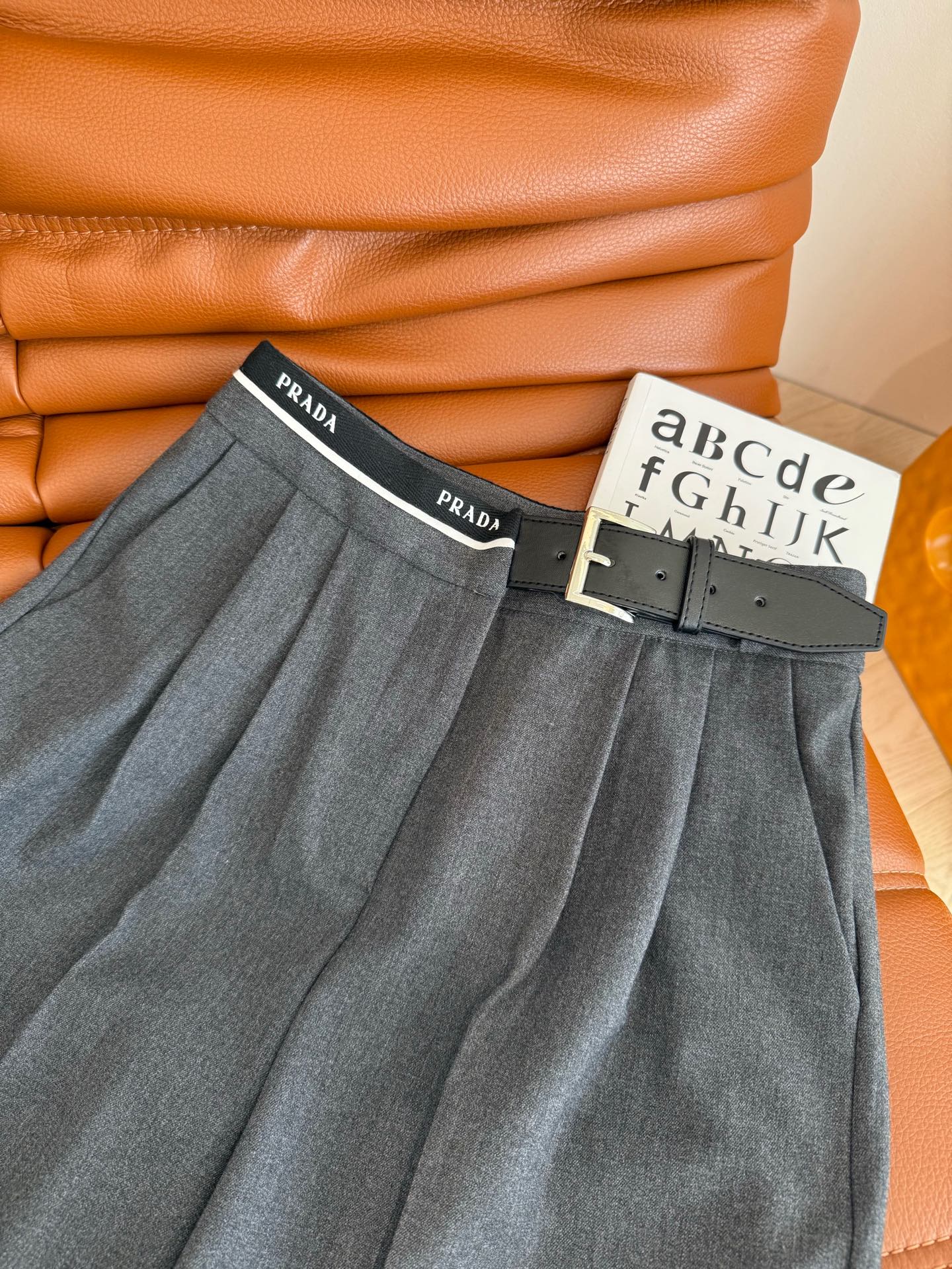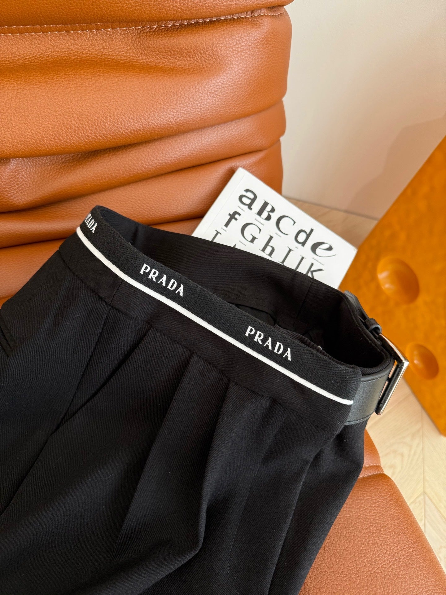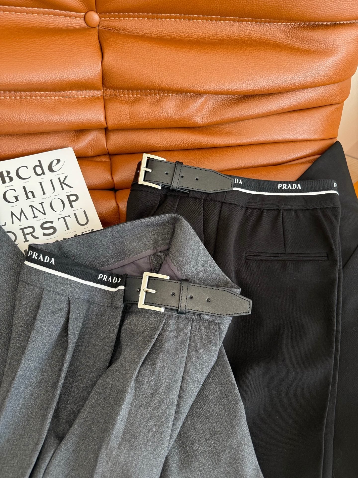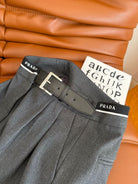 Prada 25 Leather Strap and Webbing Stitching Trousers Wool