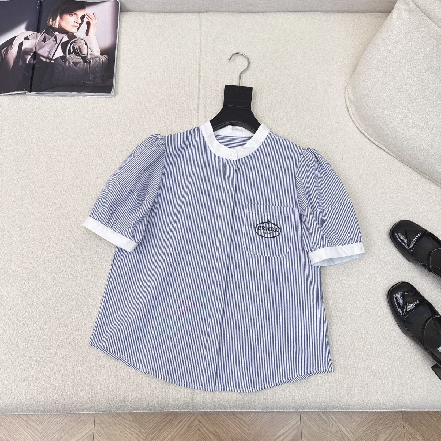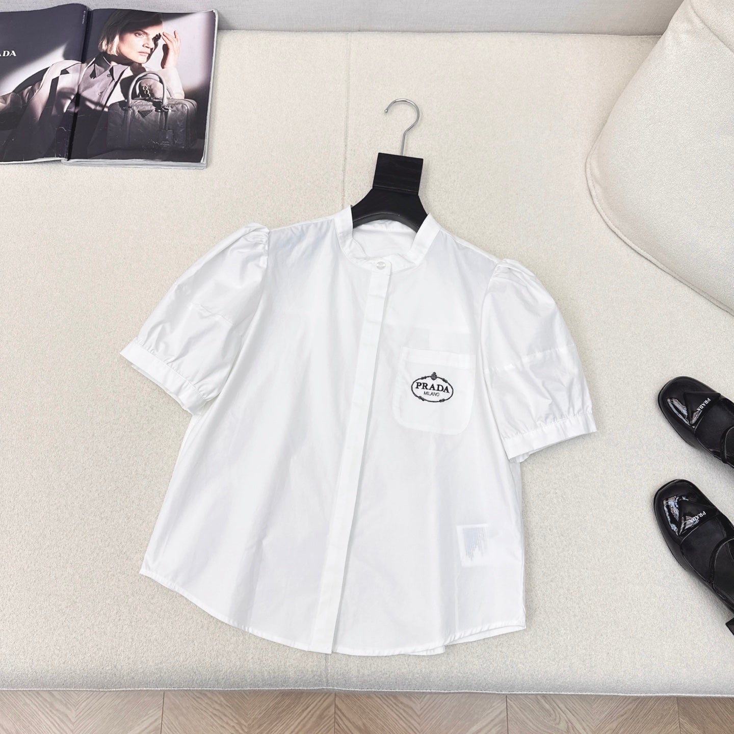 Prada 25 Logo Embroidery Shirt Cotton 614592