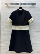 Prada 25 Patchwork Short-sleeved Dress Black mix Beige Cotton