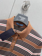 Prada 25 Striped Knitted Polo Short-sleeved Top Brown mix Black Cotton Poliamide 217945