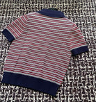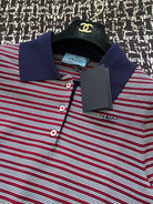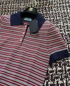 Prada 25 Striped Polo Shirt Navy Blue mix Red Tencel Wool