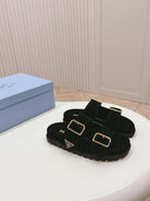 Double Buckle Strap Slides 20 Black Suede