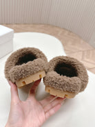 MULES ATTACHED TRIANGLE LOGO IN WOOD BROWN SHEARLING