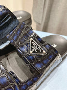 PRA CROCODILE LEATHER MOTIF SANDALS BLACK AND LAPIS CALFSKIN