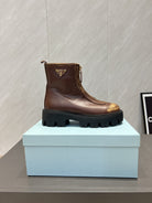 Prada 25 Martin Boots Brown Black Cowhide 501672