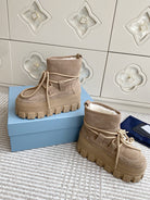 Prada 25 Shearling Apres-ski Boots Beige Suede Calfskin