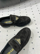 TRIANGLE LOGO LOAFER IN BLACK SUEDE