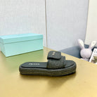 PRA CROCHET SLIDES SLIPPERS BLACK RAFFIA