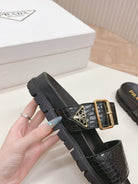PRA CROCODILE MOTIF SLIDES SANDALS BLACK CALFSKIN