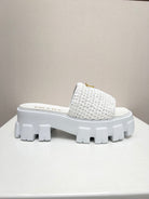 PRA THICK-SOLED CROCHET SANDALS WHITE WOVEN FABRIC