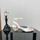 PRA TRIANGLE HEEL FLOWER MOTIF SATIN SANDALS WHITE