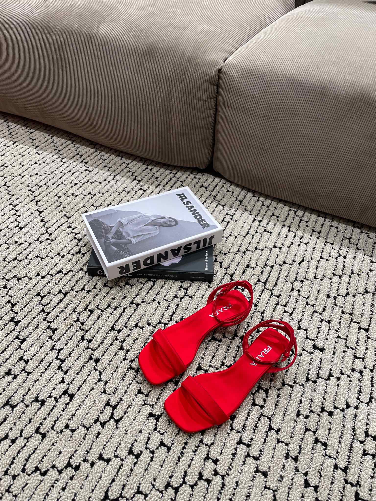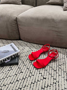 PRA TRIANGLE HEEL SATIN SANDALS CRIMSON