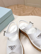PRA WEDGE PLATFORM SANDALS WHITE CALFSKIN