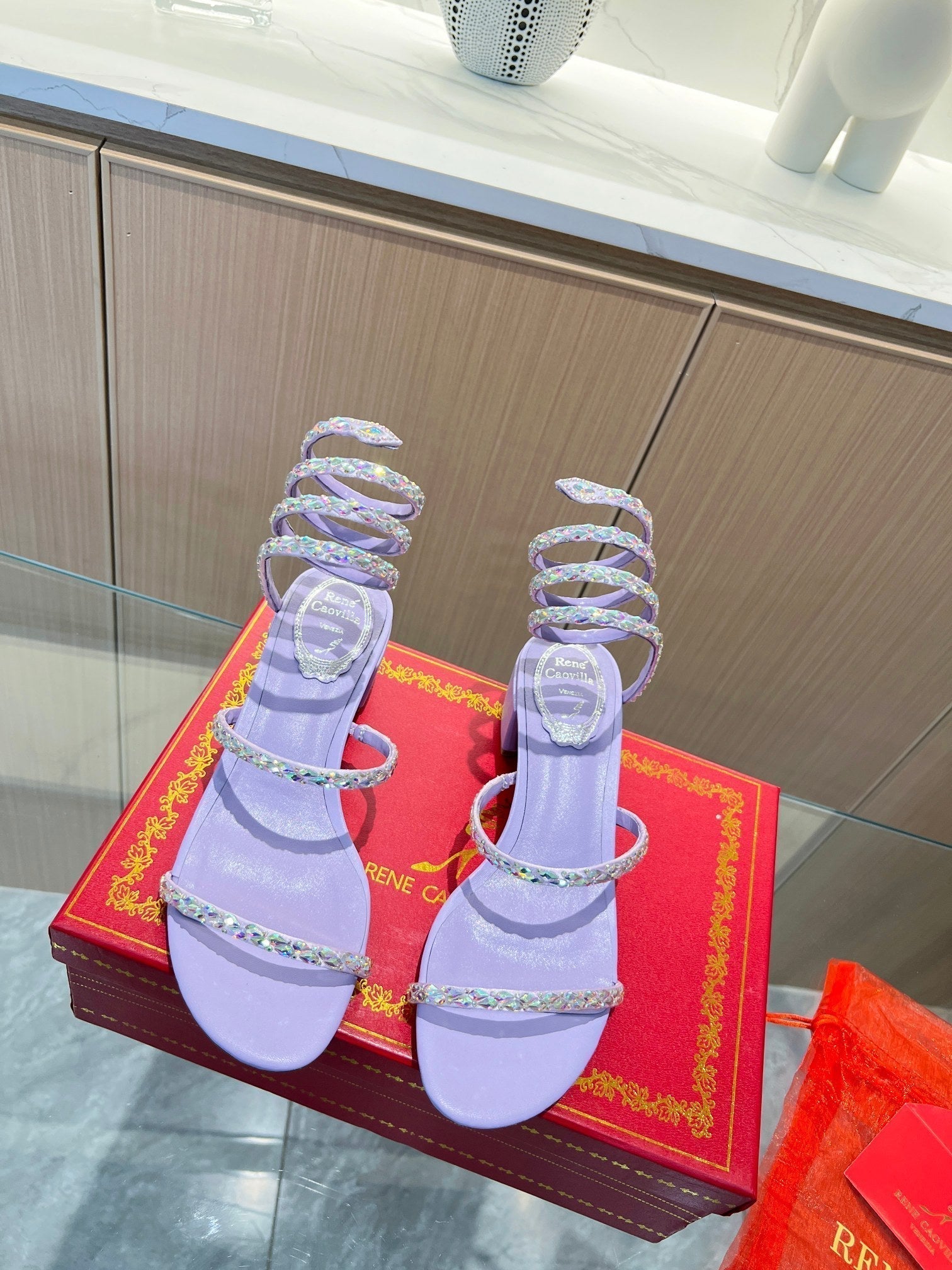 RC Diamond Sandals Purple Silk Creole Glass Diamond 341985