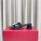Viv 25 Diamond Mid Heel Slides Black Cowhide 283042