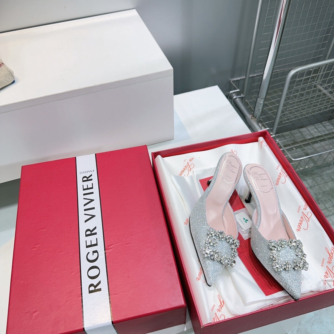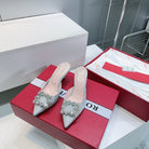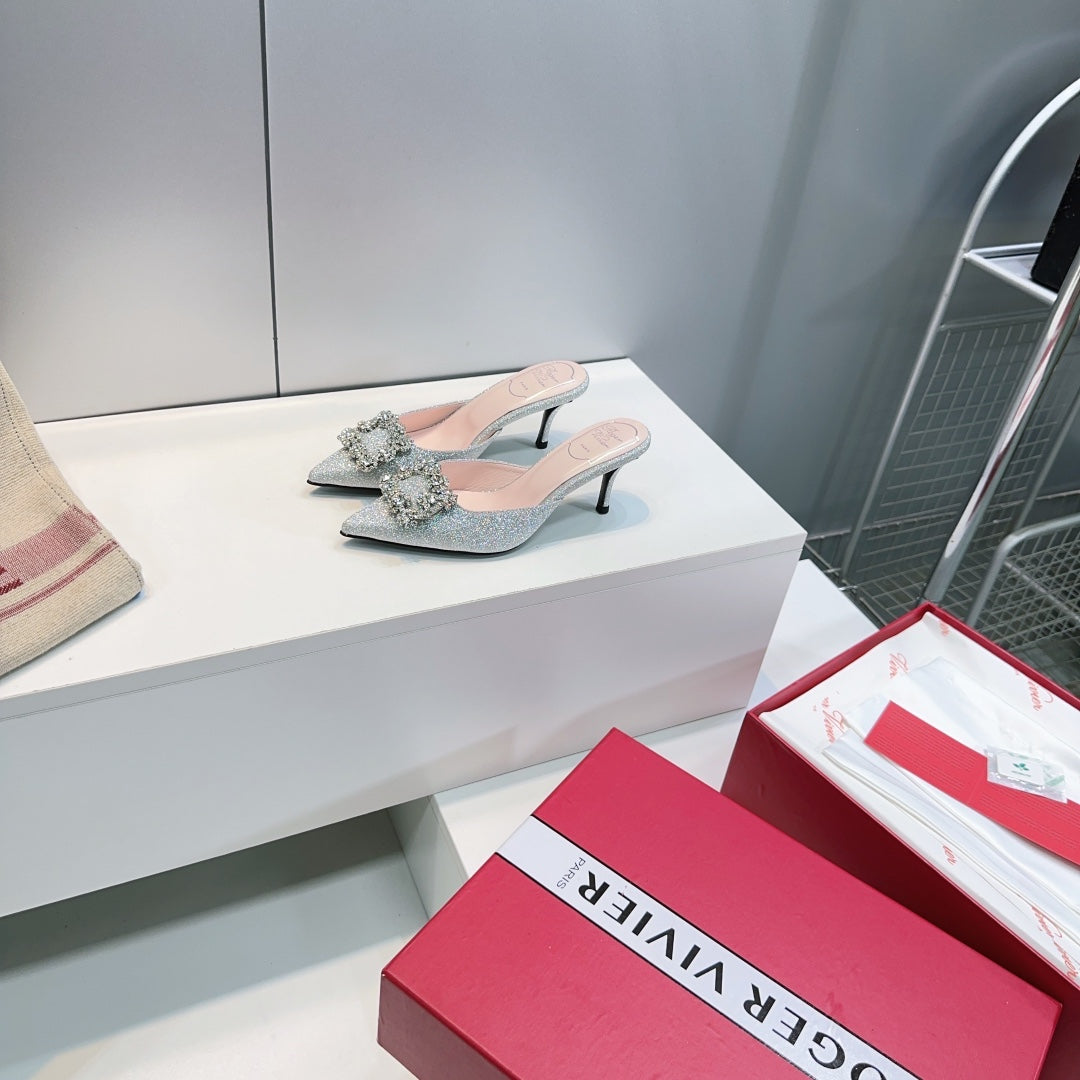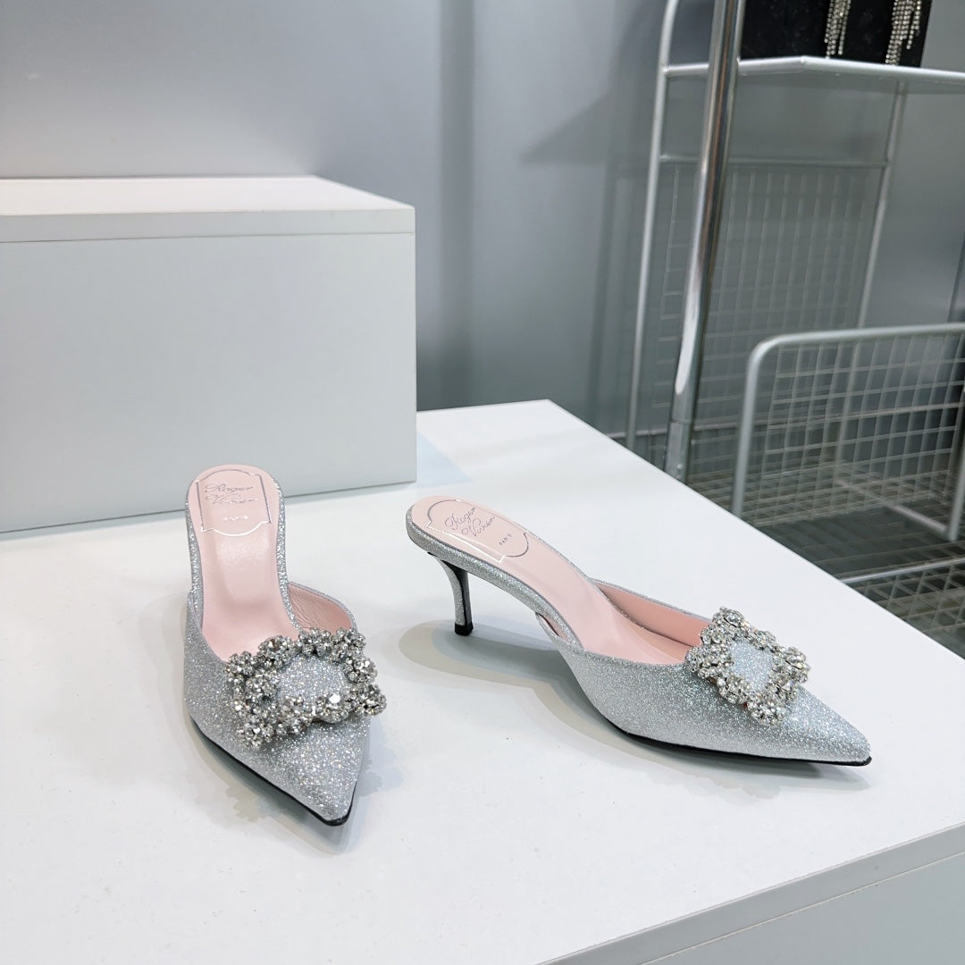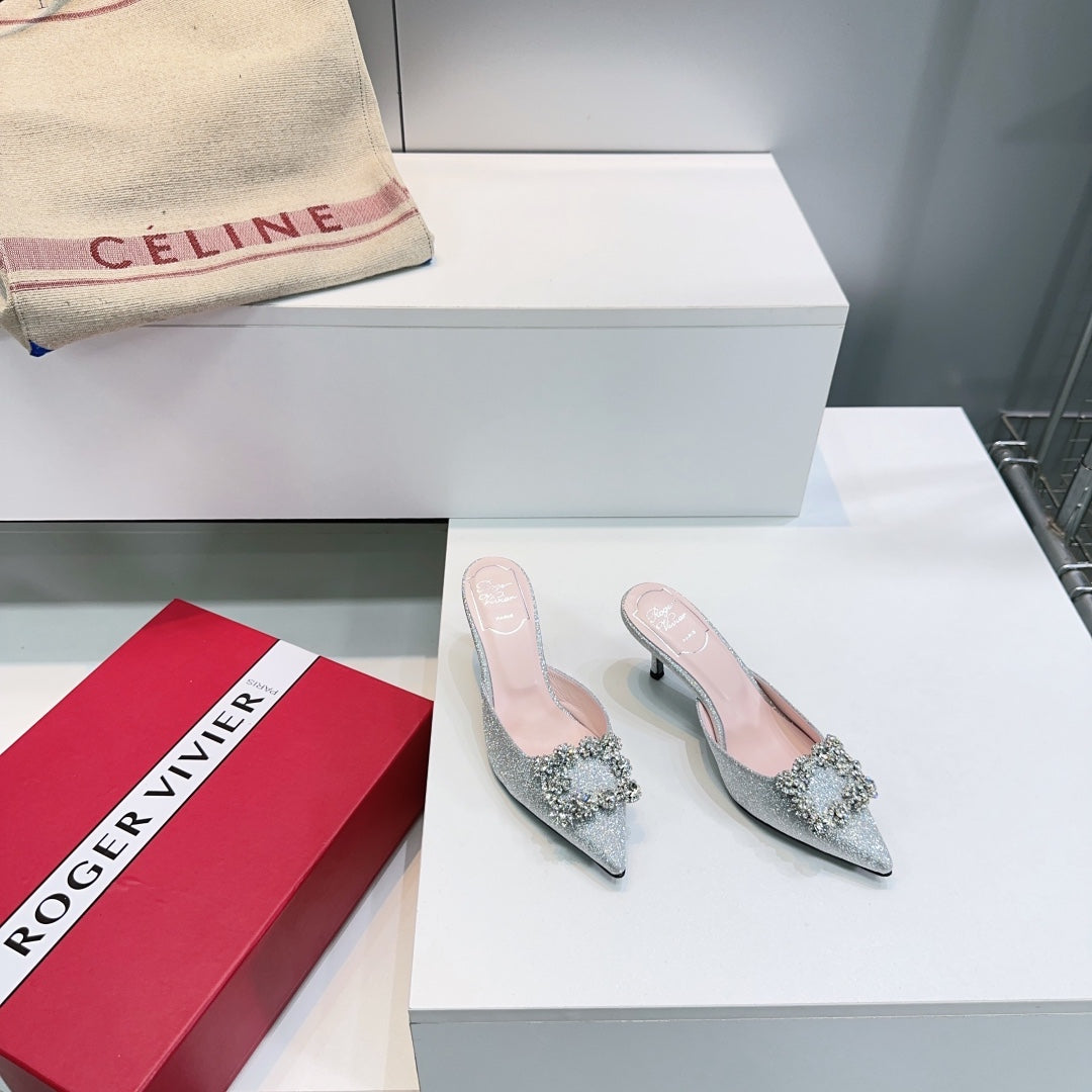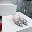 Viv 25 Mules Silver Silk Satin Czech Diamond 330671