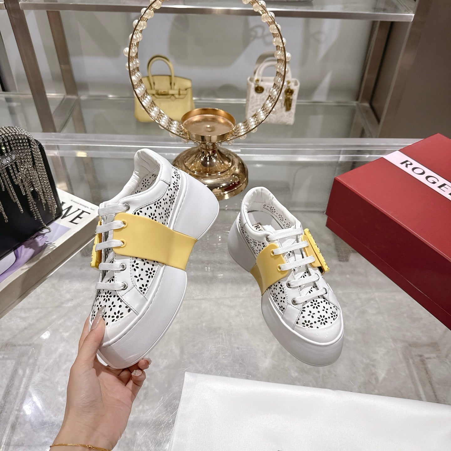 Viv 25 Square Buckle Platform White Yellow Cowhide 262976