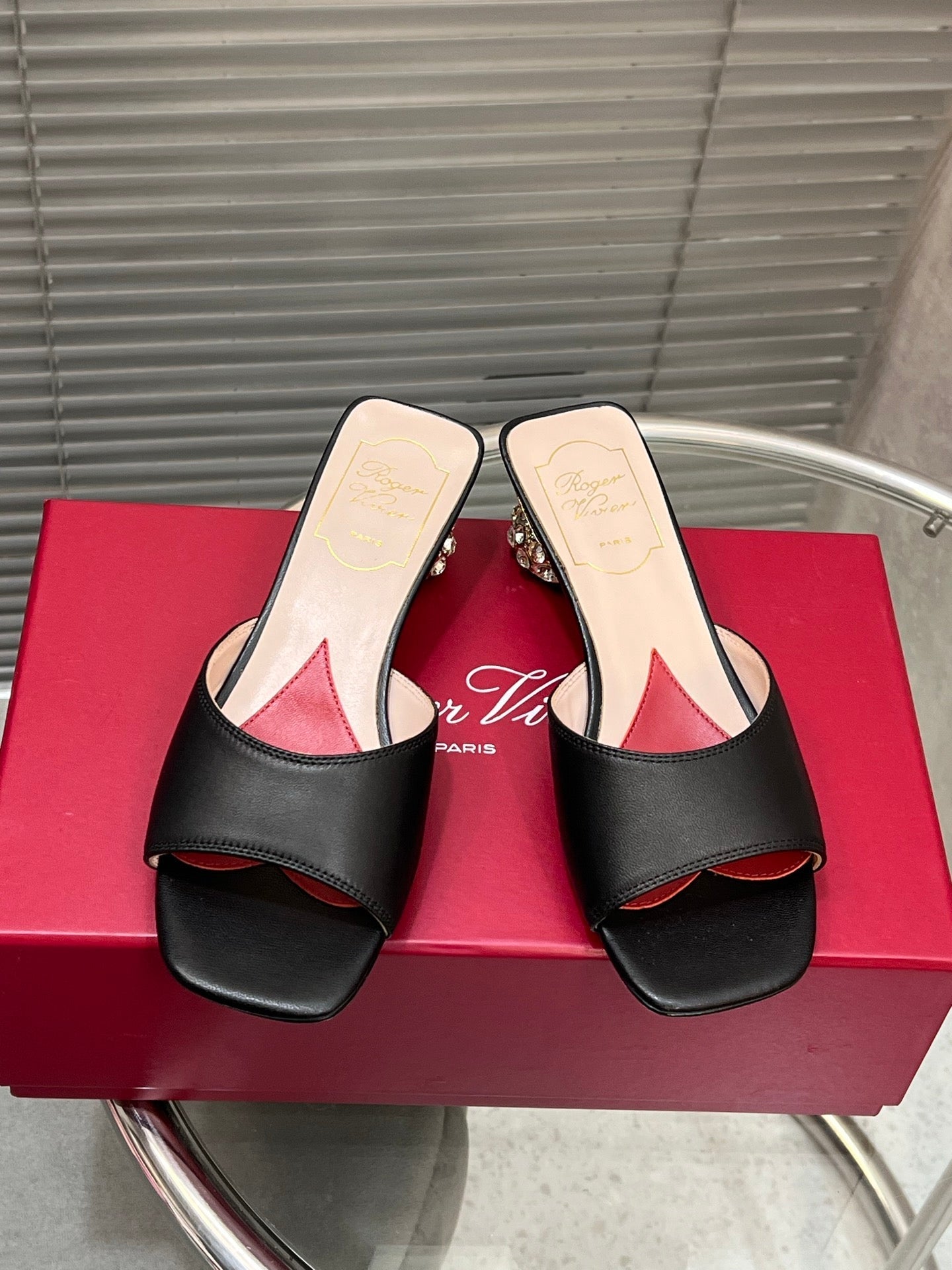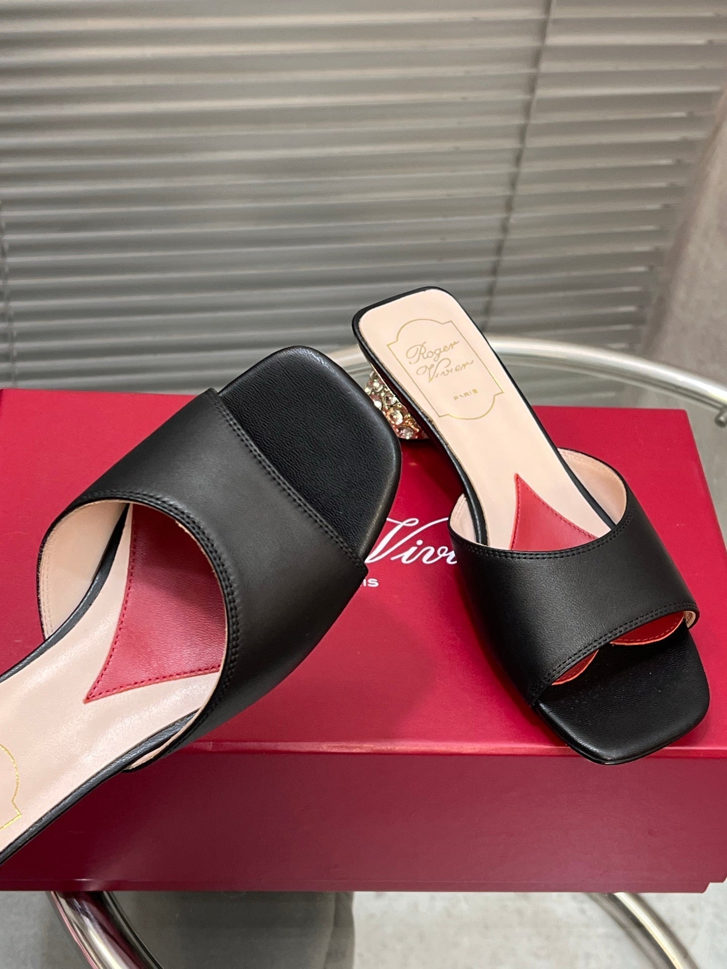 Viv Diamond Sole Mules Black Cowhide 267689