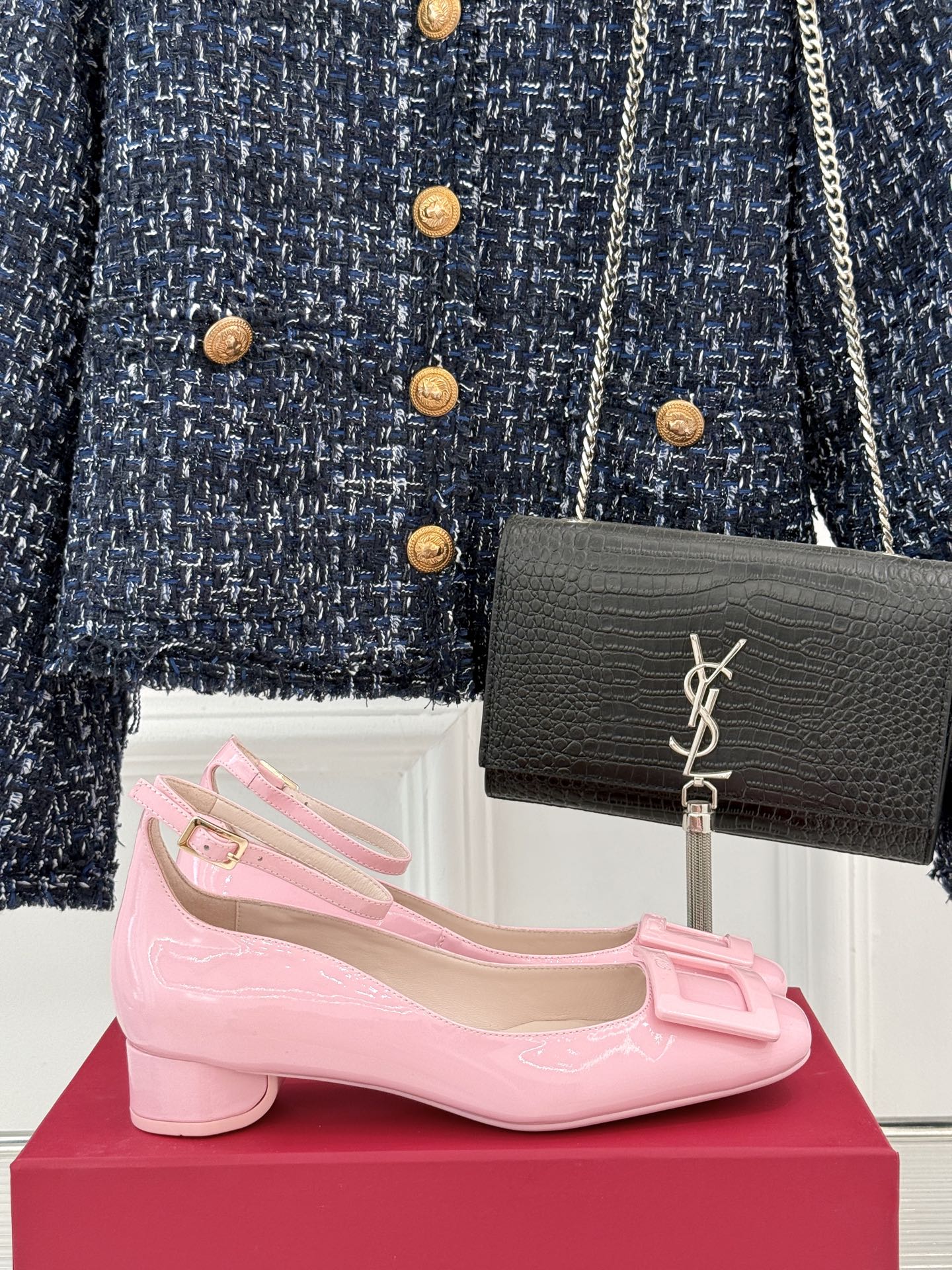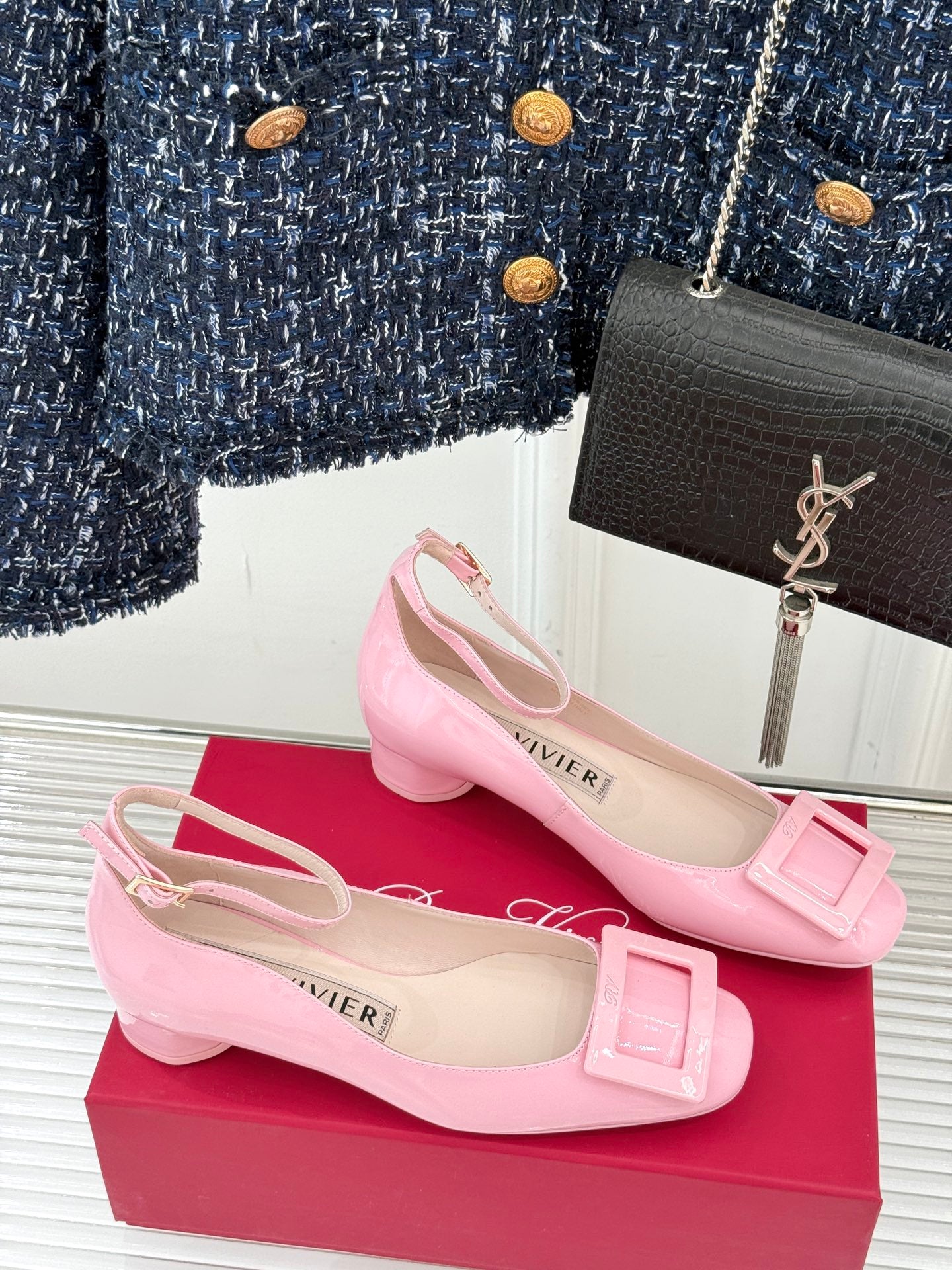 Viv Square Buckle Mary Jane Pink Fetal Cowhide 286705