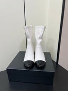 Chanel Double C Giant Pearl Heel Stretch Boots White Sheepskin 441706