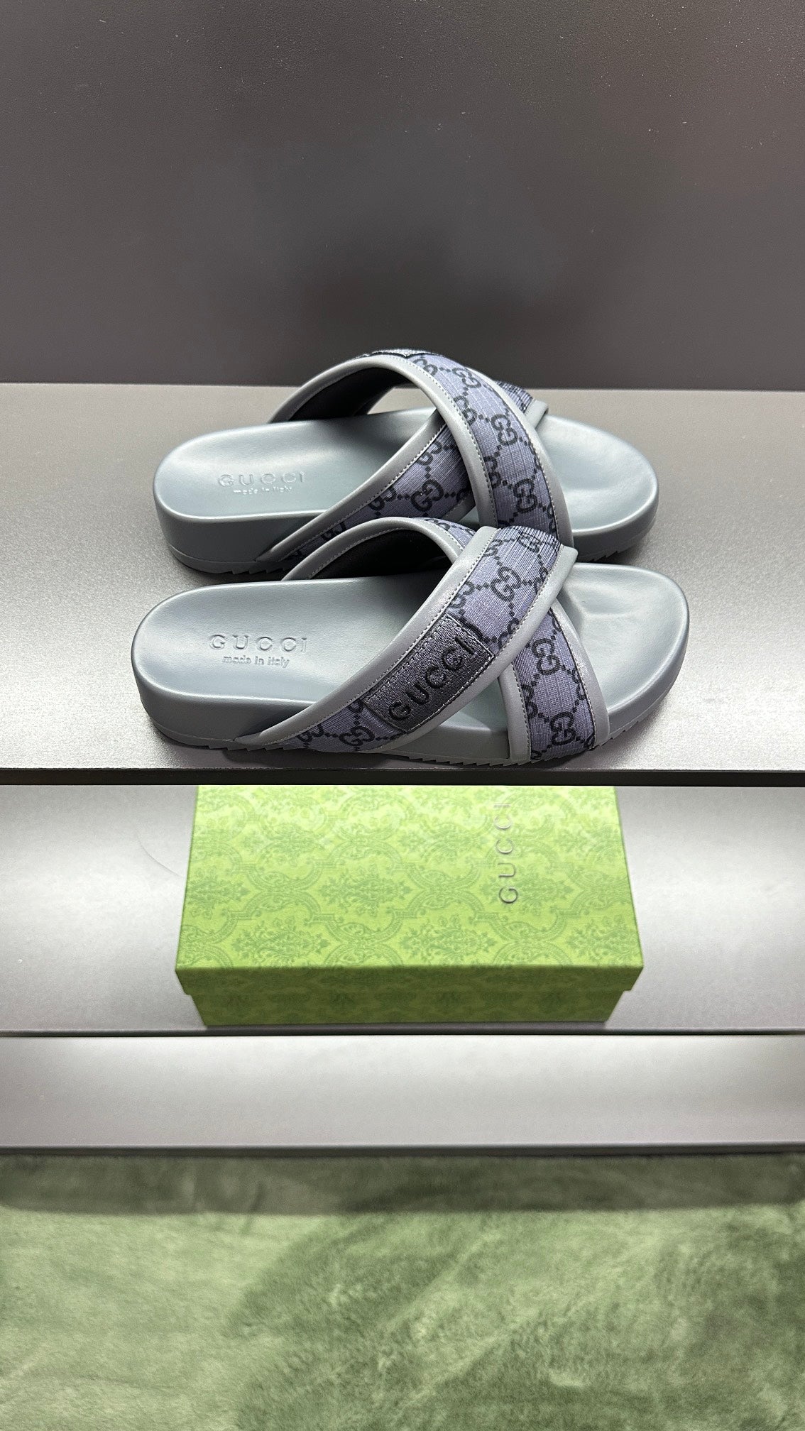 GG Men's Sandals Purple Grey Polyester Leather 547242