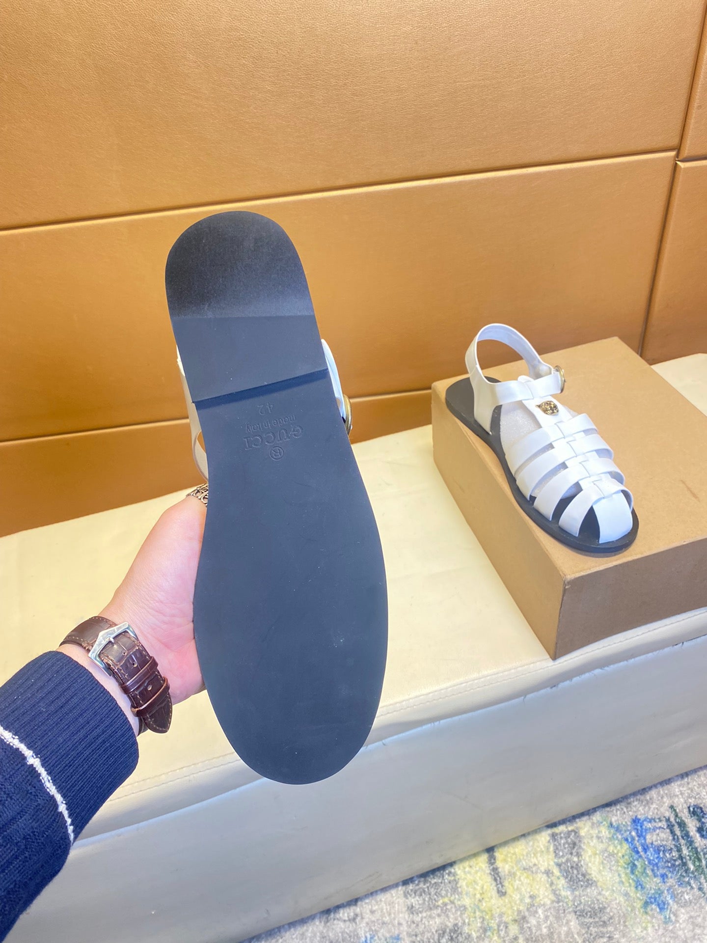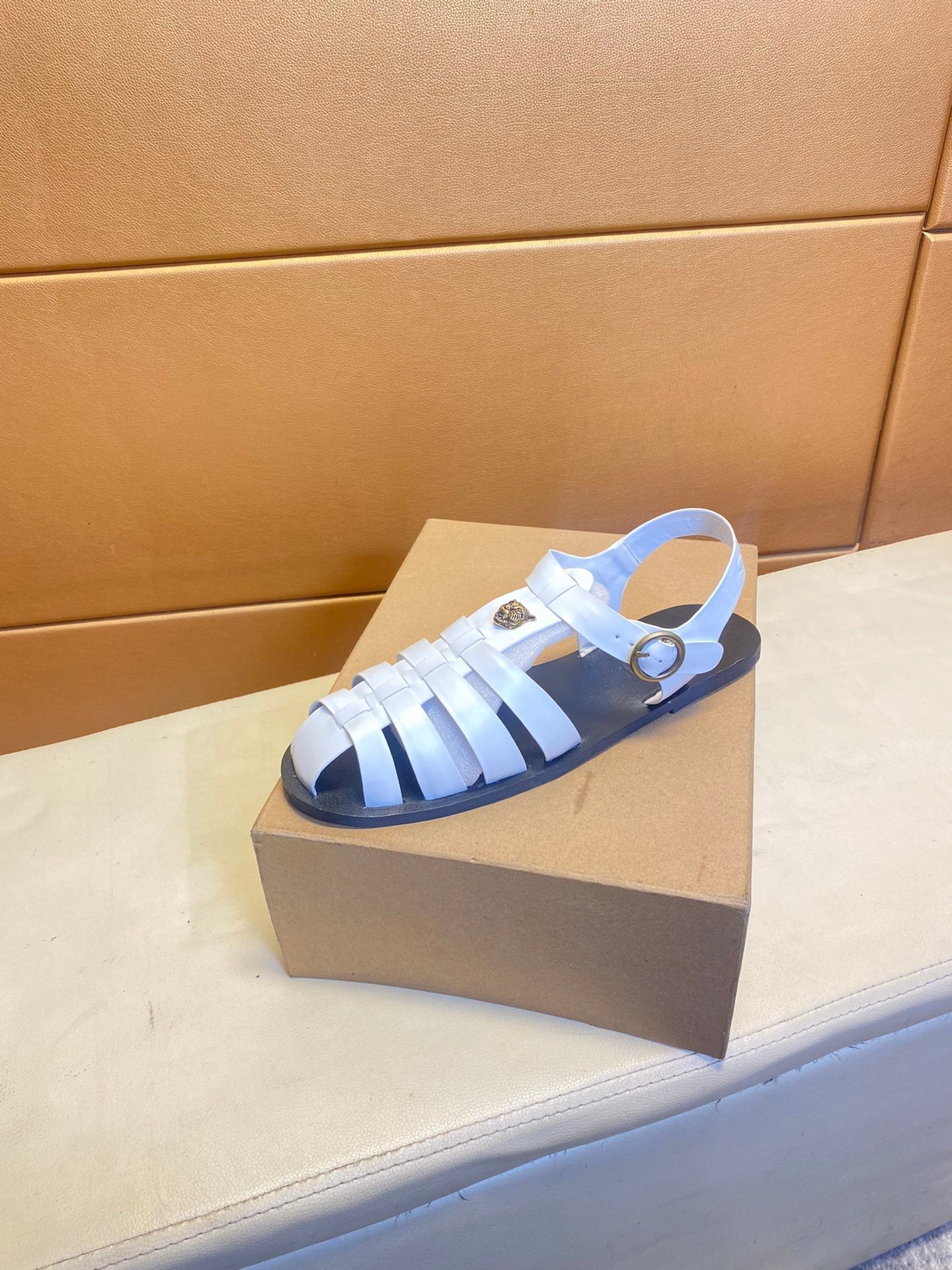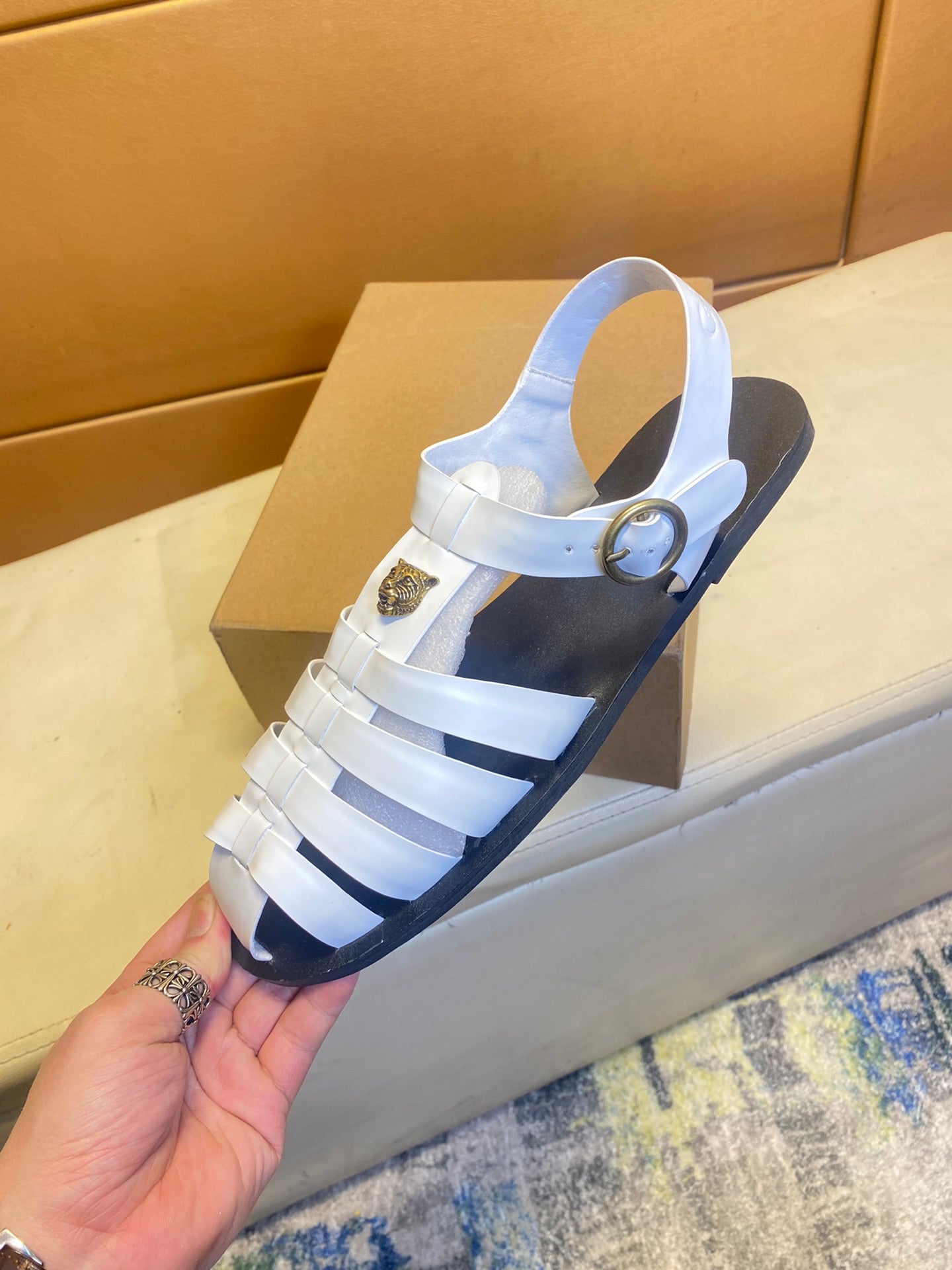 GG Men's Sandals White Cowhide 743277