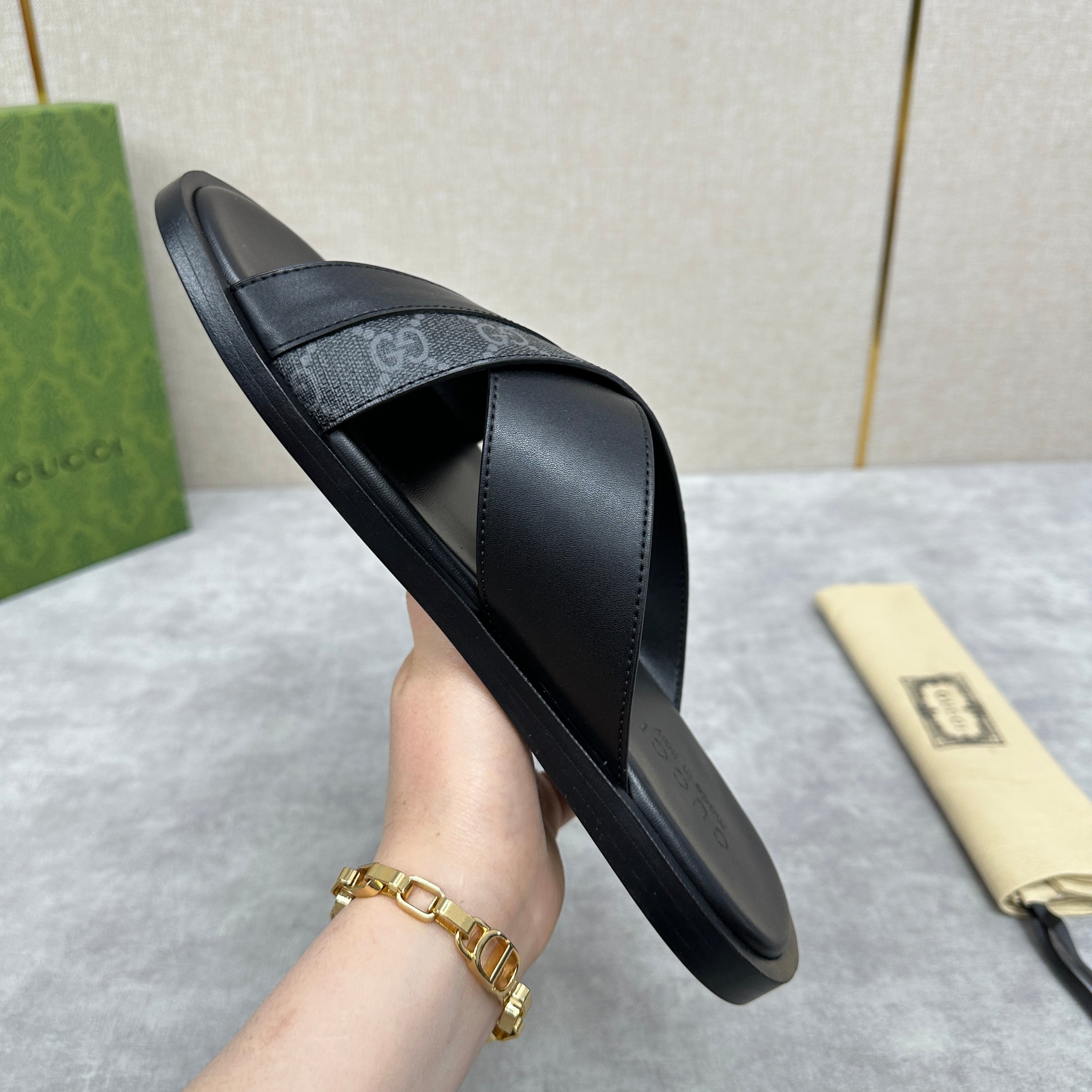 GG Men's Slide Black Canvas Cowhide 542949