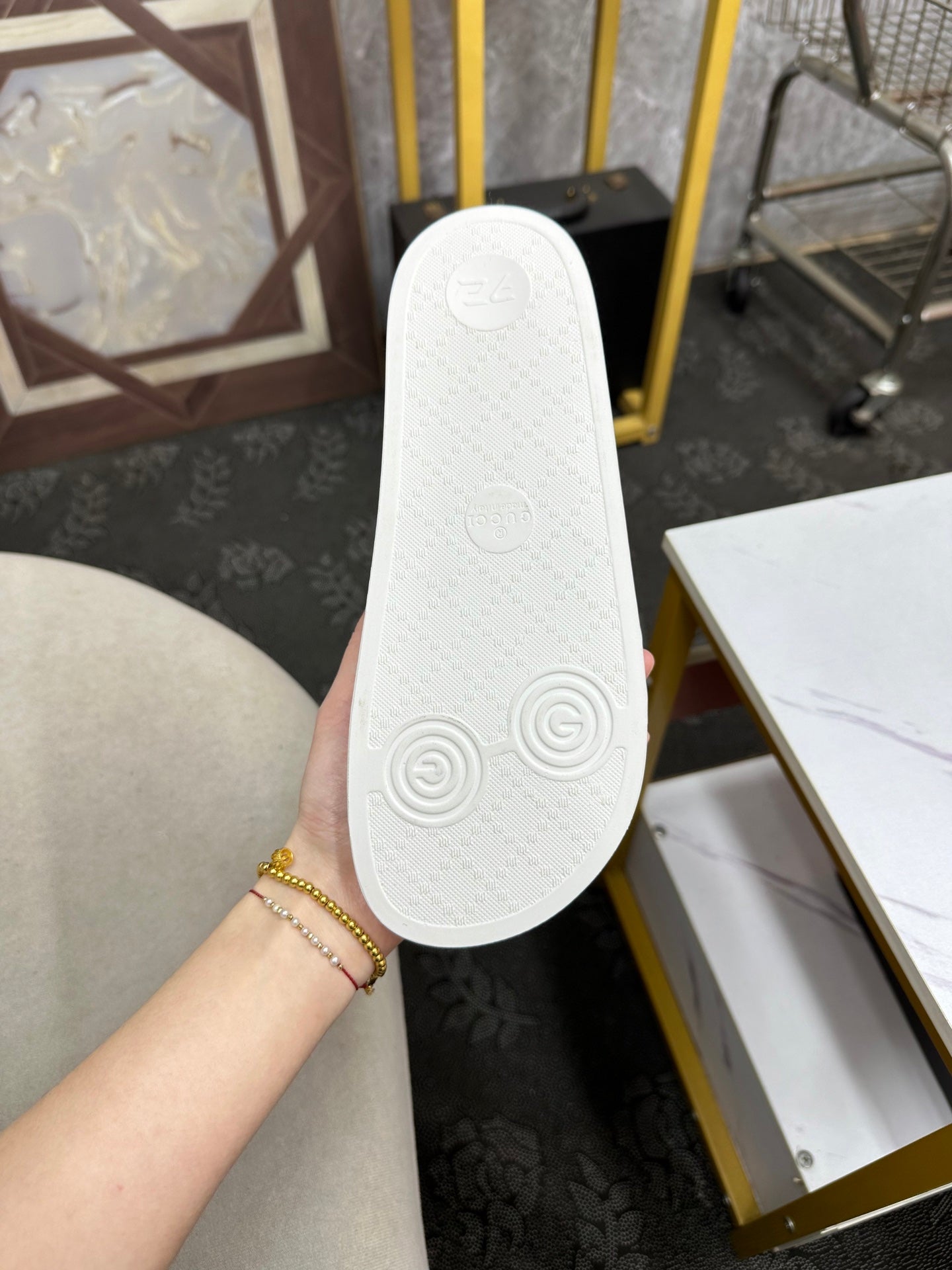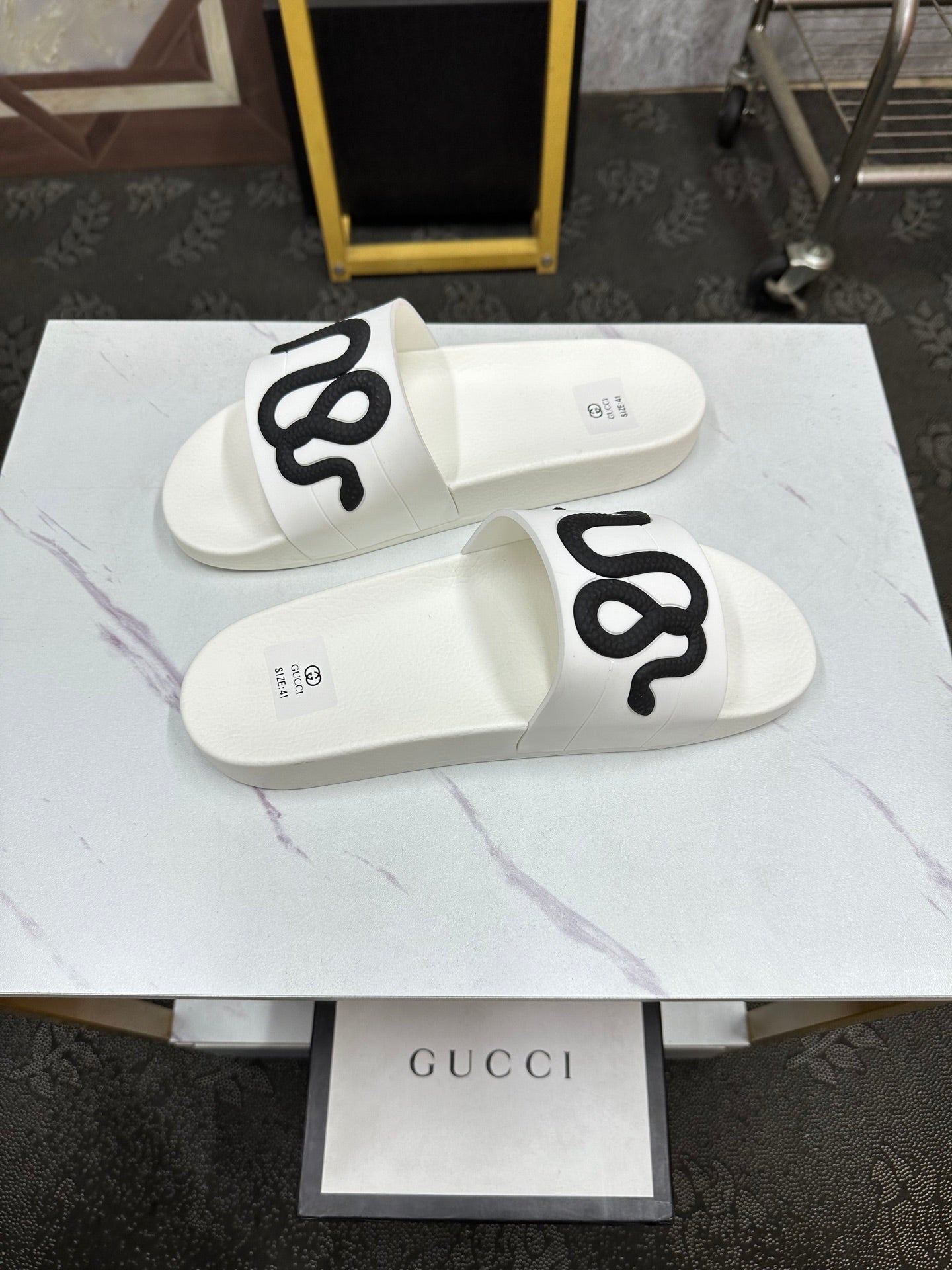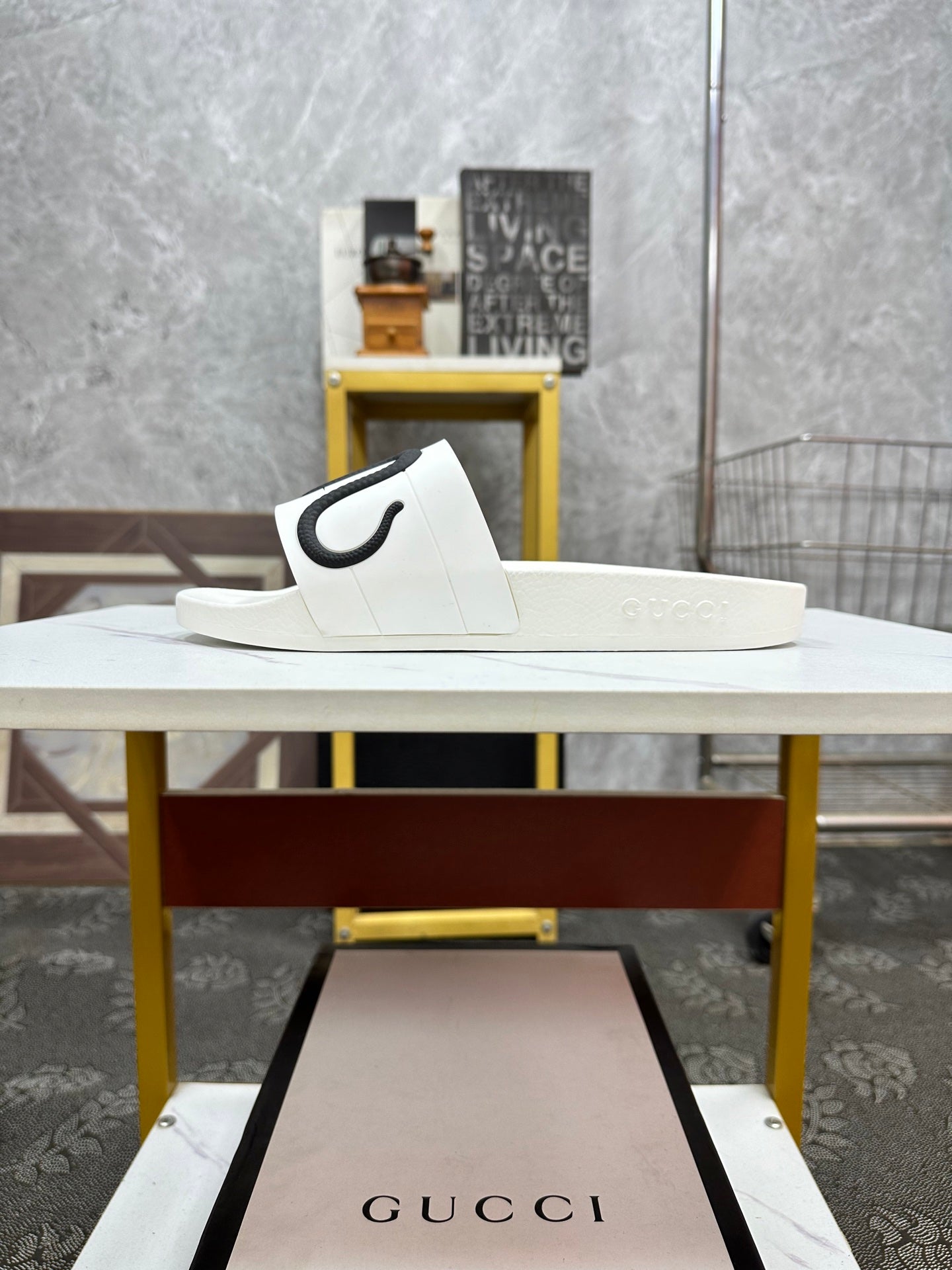 GG Men's Snake Embossed Slide White Black Rubber 540109