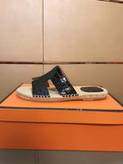 HM Men's Antigua Espadrille Black Embossed Cowhide 704130