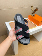 HM Men's Kazimir Sandals Black Red Calfskin 735743