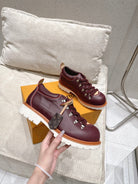 LV Pharrell and Nigo Hiking Shoes Burgundy Sheepskin 383739