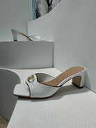 VT Mid Heel Mule Sandal White Sheepskin 292758