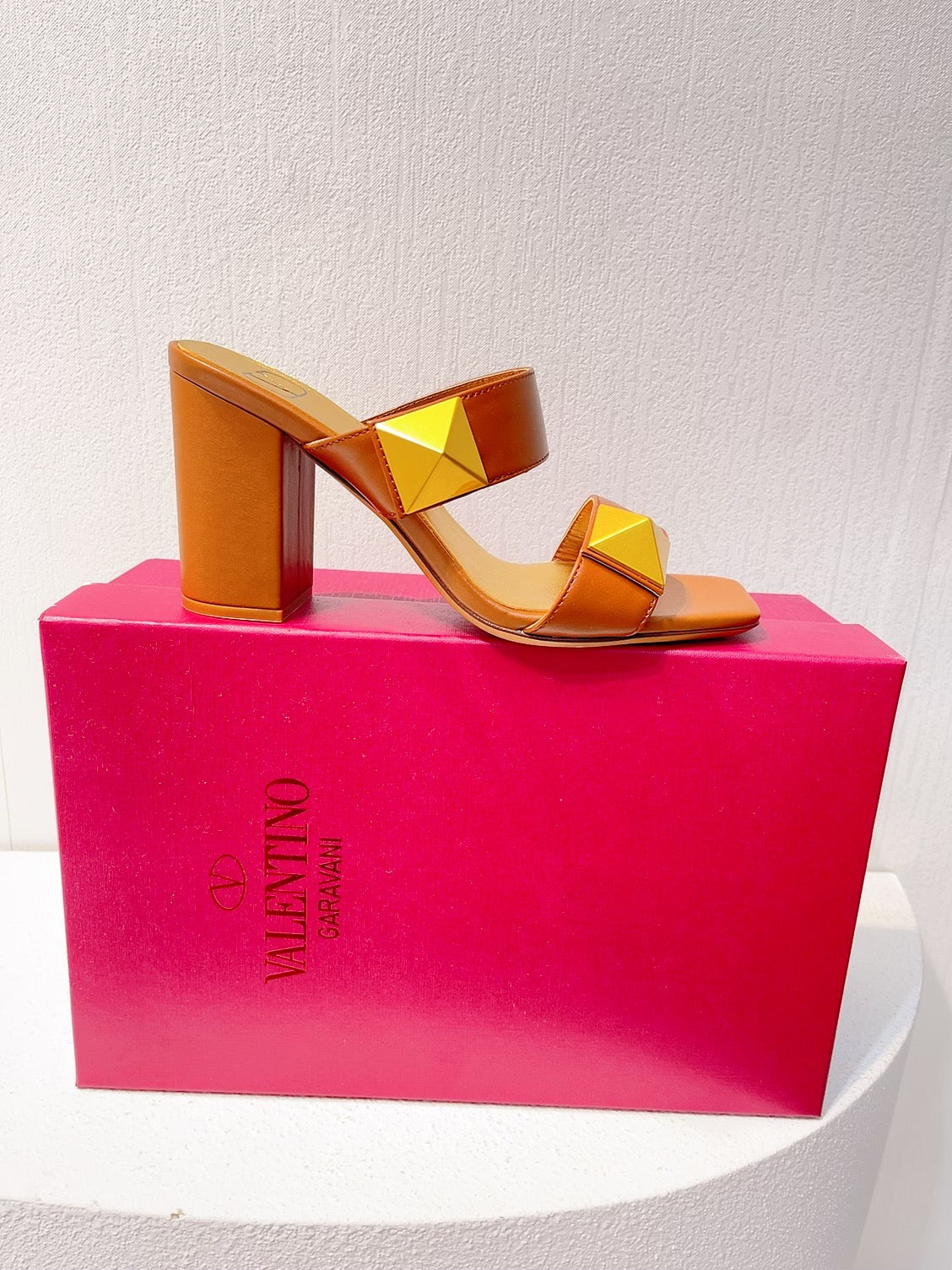 VT One Stud Leather Sandals Brown Cowhide 292753