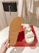 VT Rockstud Sandals White Espadrilles Cowhide 328128