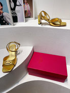 VT Sandals Heels 50mm Gold Cowhide 292774