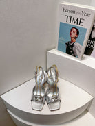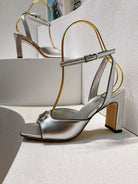 VT Sandals Heels 70mm Silver Cowhide 292785
