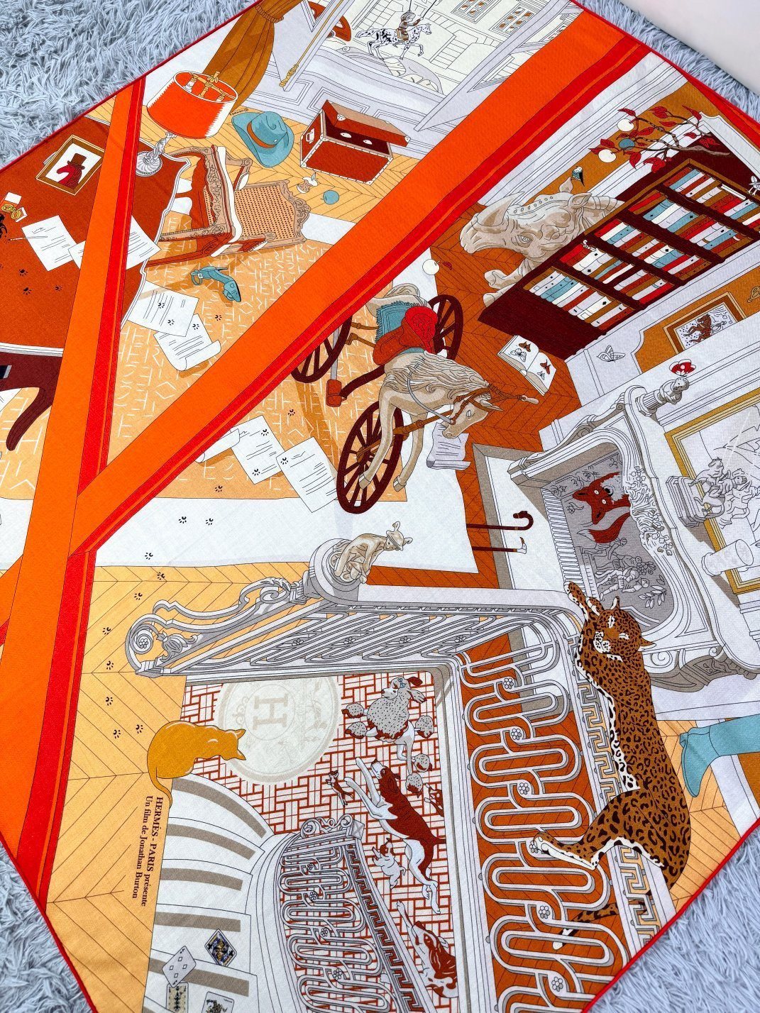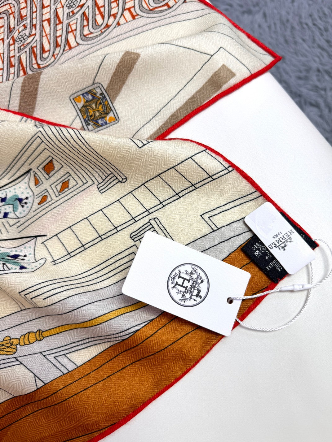 Square scarf 135 CM Yellow Orange Colorful Cashmere And Silk
