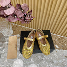 alaia ballet flat stud in fishnet gold metalic lambskin