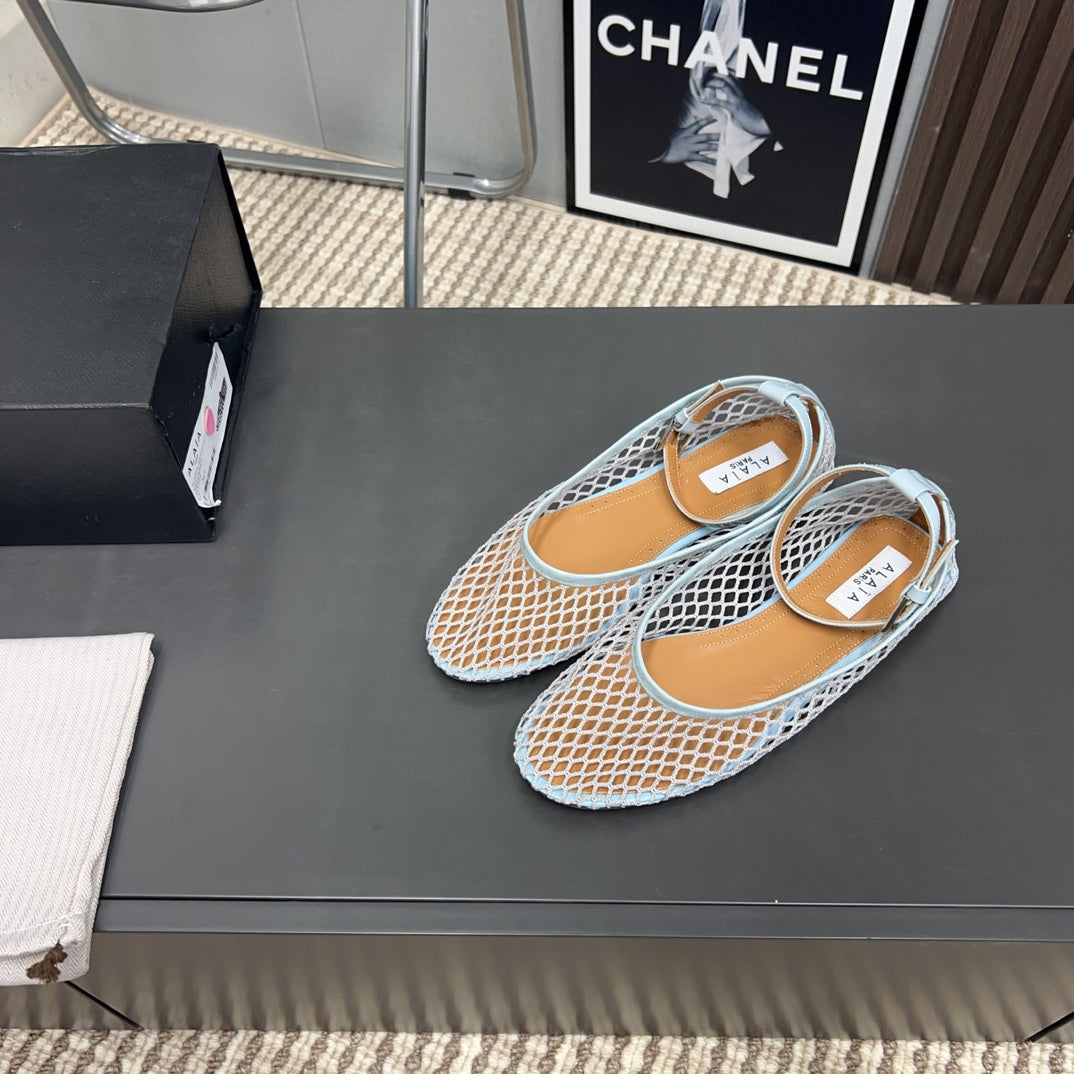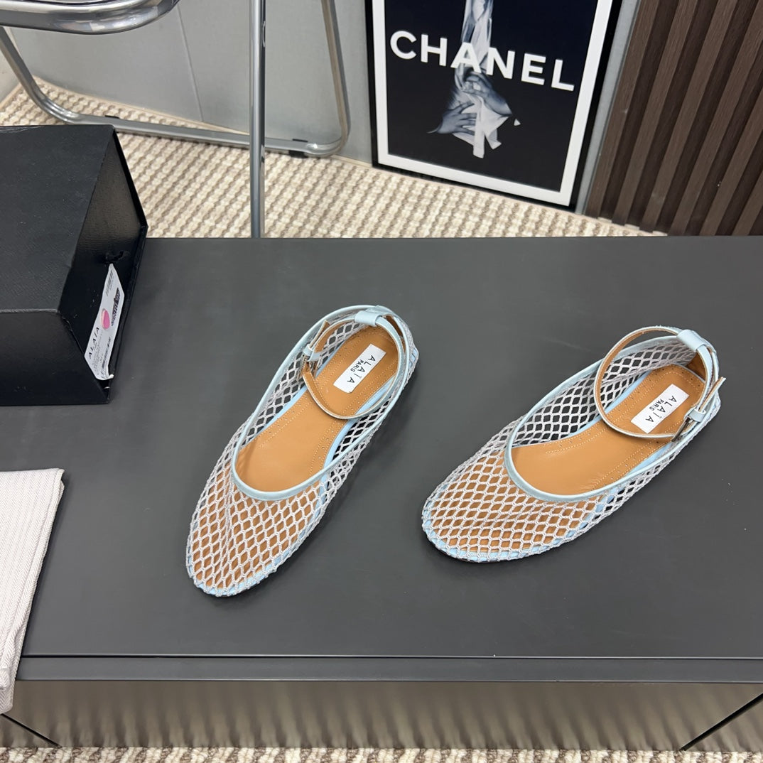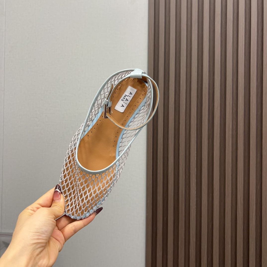 Alaila Mary Jane In Light Jade Green Mesh Fabric 996075