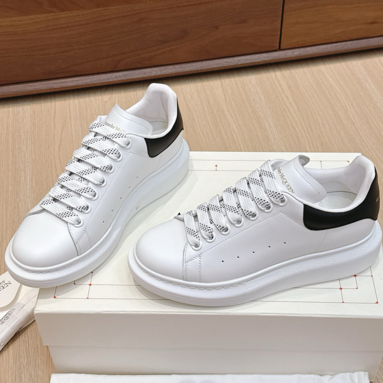 Alexander McQueen Sneaker White Black Cowhide 463111