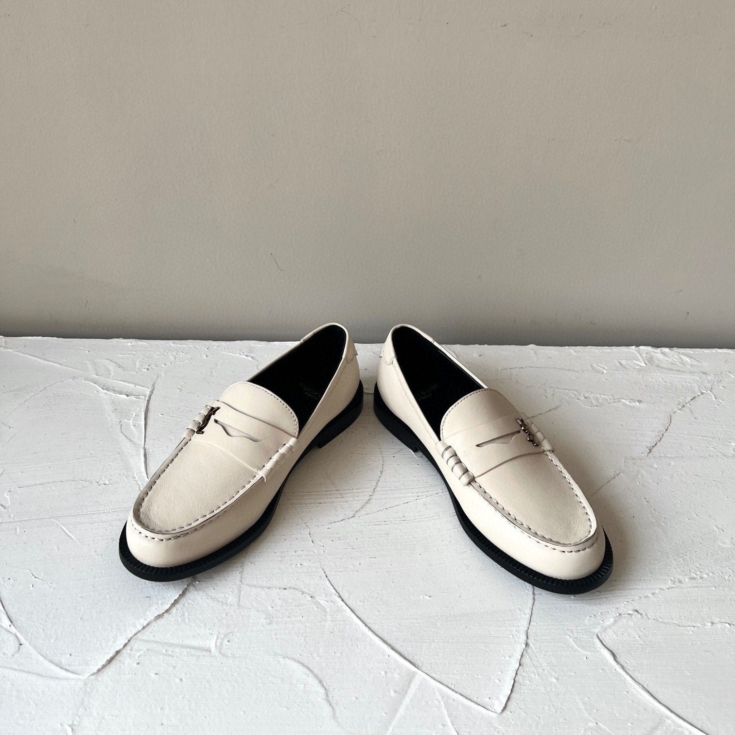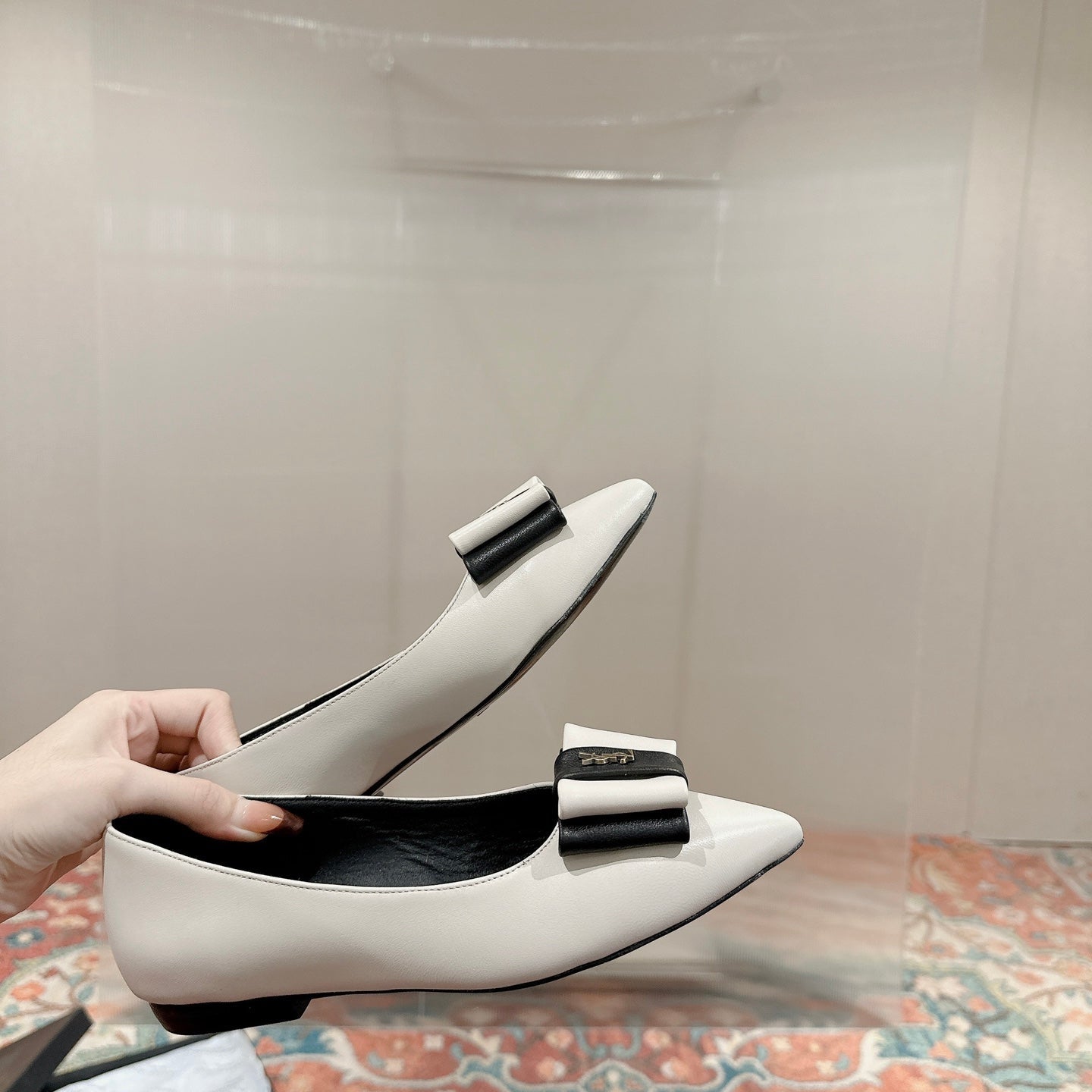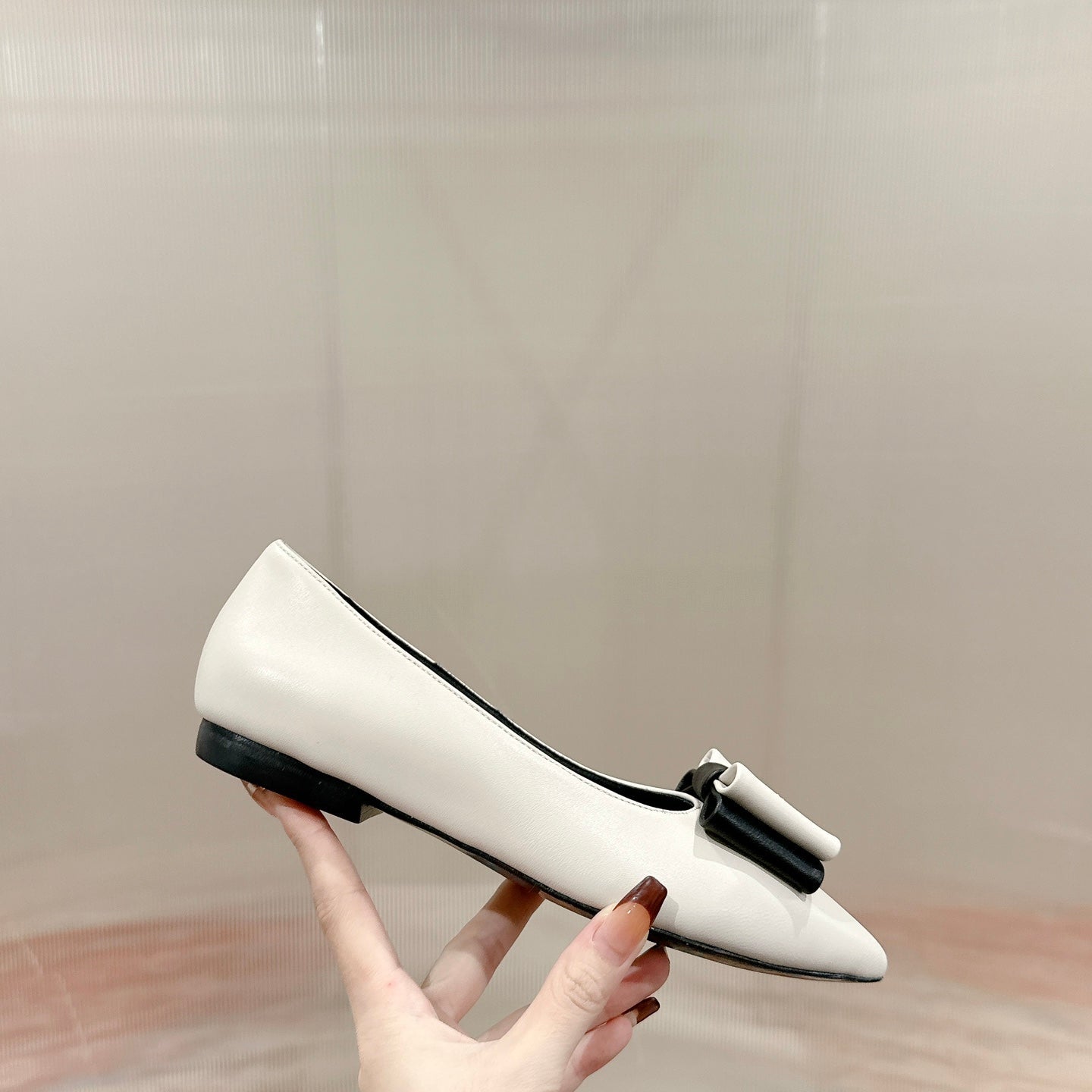 CASSANDRA BALLET FLAT IN WHITE MIX BLACK SMOOTH LAMBSKIN