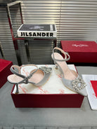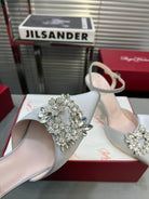Flower Strass Buckle Slingback Pump 90 Grey Satin